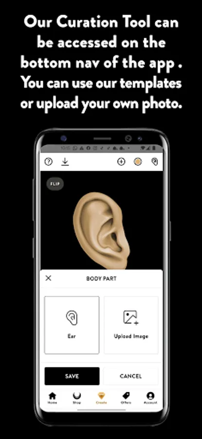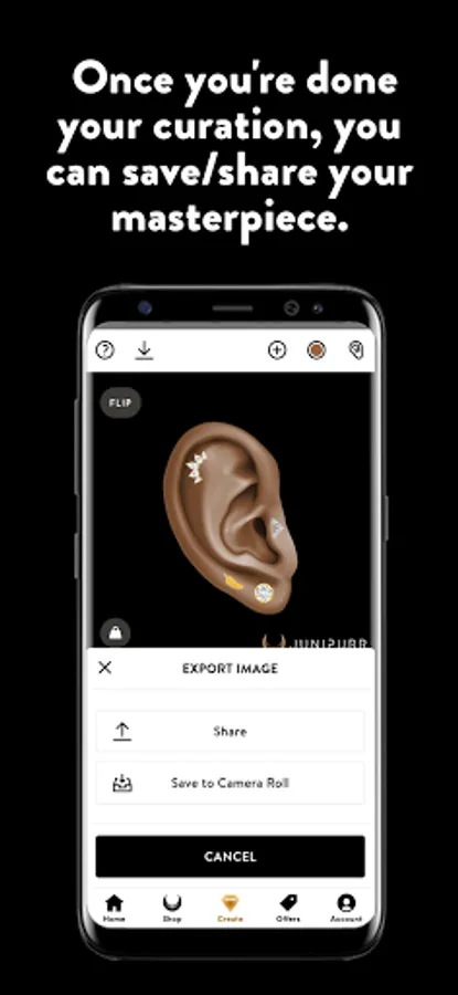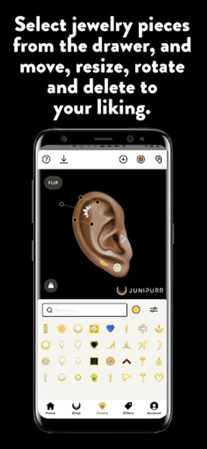 With the latest update, we have launched a Curation Tool that can be accessed on the bottom nav of the app. To get started, you can either select an ear template or upload your own photo to the canvas. You can then select jewelry pieces from the jewelry drawer, move it around on the canvas, resize, rotate and delete. Our jewelry drawer can be filtered by categories, colours or by search. Once you're done your curation, you can save/ share your masterpiece and by simply click the basket button to add them to your shopping cart and check out.