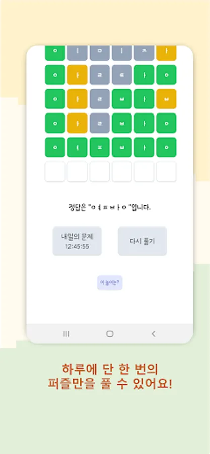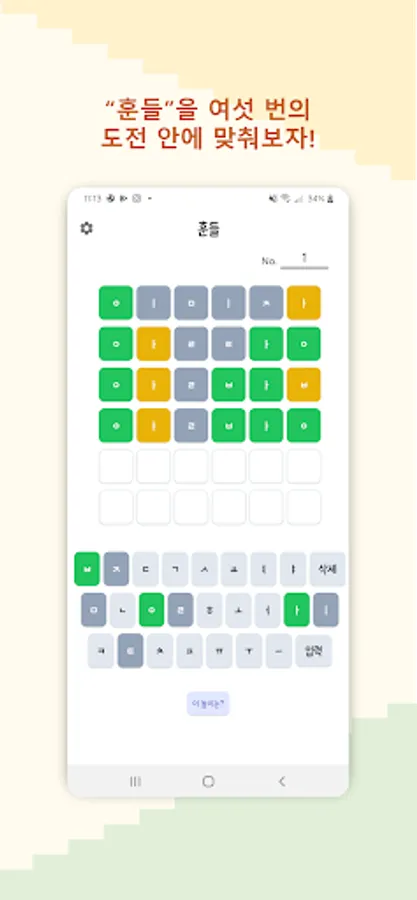 This game is the Korean version of Wordle. Check out JunJangE's original code, or tune to other languages using the github.com/junjange/Kordle-Android fork! Vocabulary of ''Hundeul'' was taken from the National Institute of the Korean Language, KLUE vocab, NIADic.