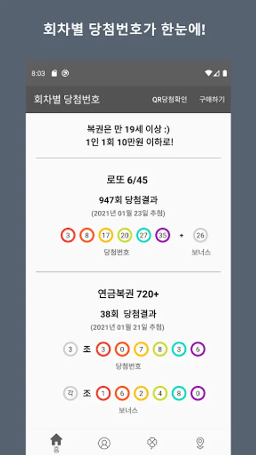 ※ The data of the lucky lottery app is based on the Korean companion lottery (sharing lotto).