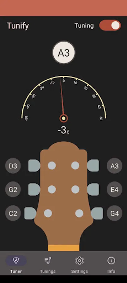 Tunify or by its original name JunkieTuner is an open source and free Guitar Tuner Android application. It is developed implementing the Yin algorithm for pitch detection. You can find more information about the specific algorithm on the relevant paper published by Alain de Cheveigné and Hideki Kawahara in 2001.