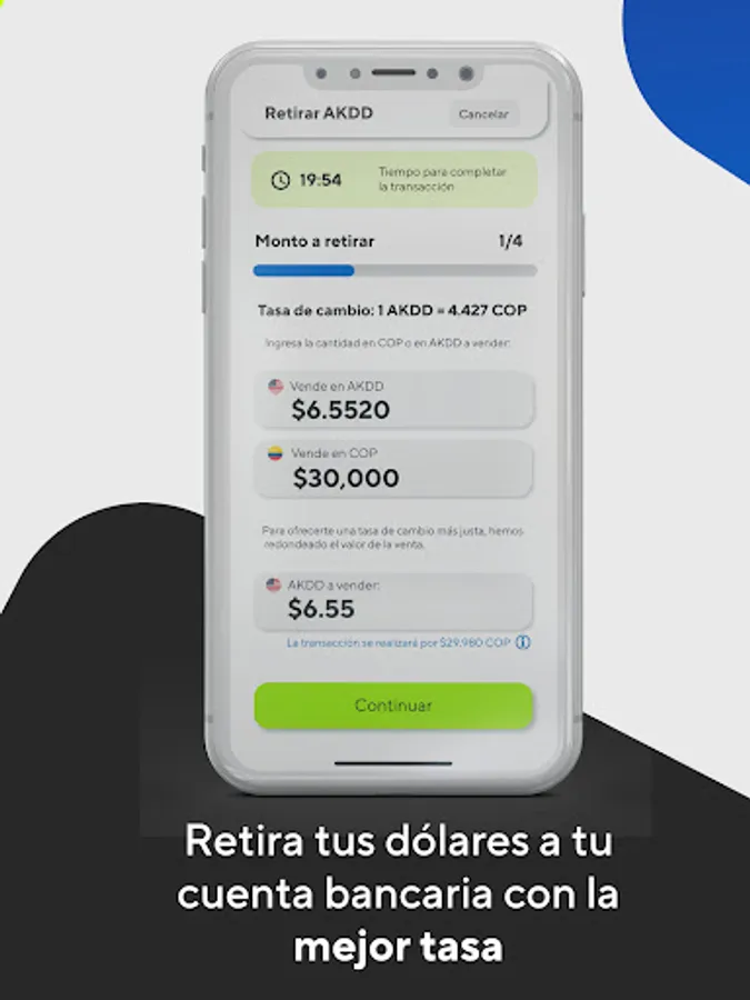 In addition, you will always have the best rate to buy or sell digital dollars, which means that you will be able to maximize your savings. And if at any time you need to convert your digital dollars into your local currency, akaunt allows you to do it easily and quickly, receiving them in your trusted bank account.