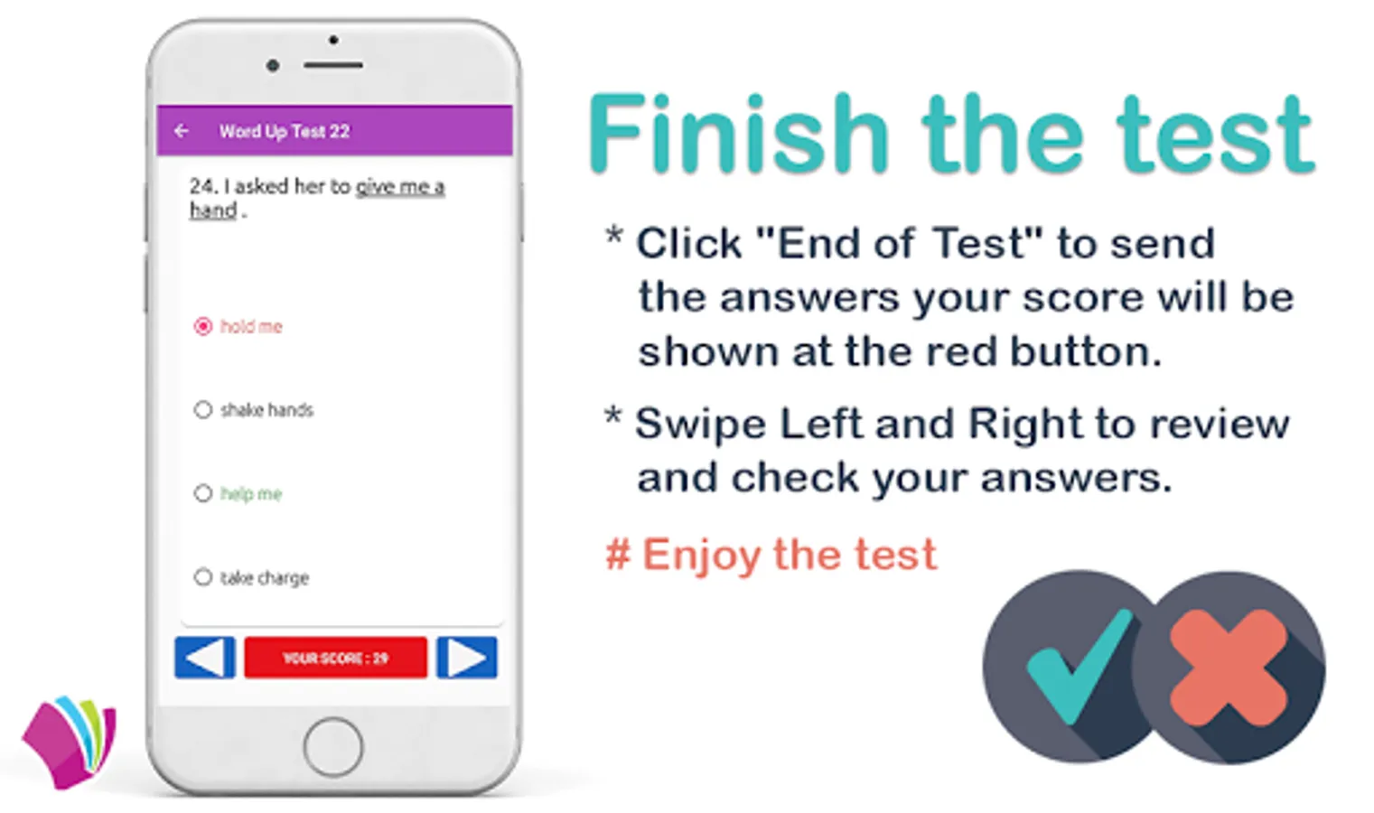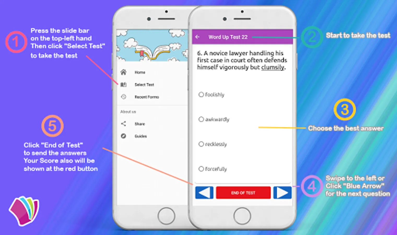 - Do not try to take all tests at once, usually, use Word Up 1 test(30 words) a day to improve your English Vocabulary (the more you learn the vocabulary you get).