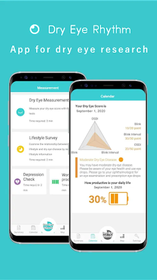 "Dry Eye Rhythm" is an application that you can do dry eye check in 5 minutes using the smartphone.