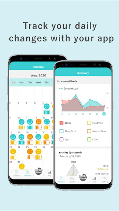 4 The results of the measurement can be seen on the graph and calendars, and you can check the change in dry eye score and the correlation with your lifestyle with your own eyes.
