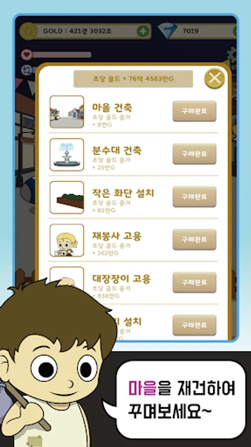 - Gold increase per second