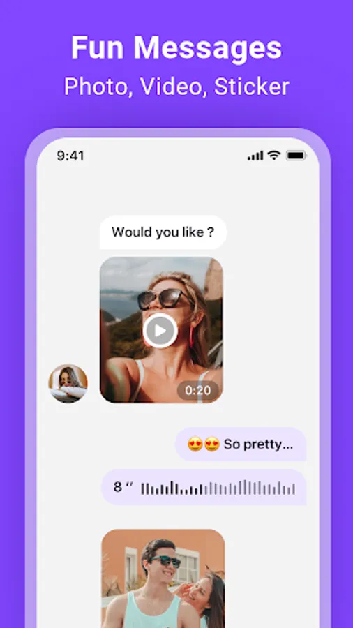 Fun communication should be without limits! Express yourself with customized emoticons, stickers, GIFs, doodles on duo face, play games together while duo video chat, send pictures, voices, videos or locations messages.