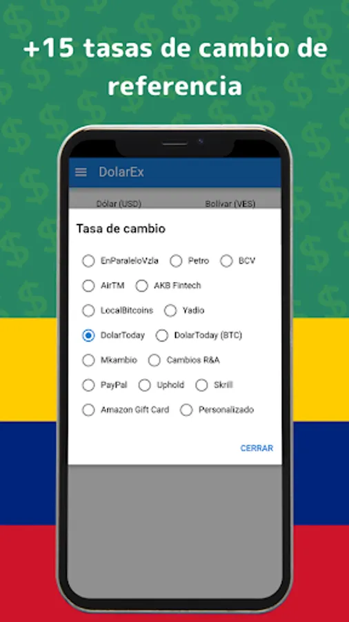 We take as reference the rate of the most relevant exchange houses and pages: EnParaleloVzla, Petro, Banco Central de Venezuela BCV, AirTM, AKB Fintech, LocalBitcoins, Yadio, DolarToday, DolarToday (BTC), MKambio, Changes R&A, PayPal, Uphold, Skrill, Amazon Gift Card, or even your own custom rate.