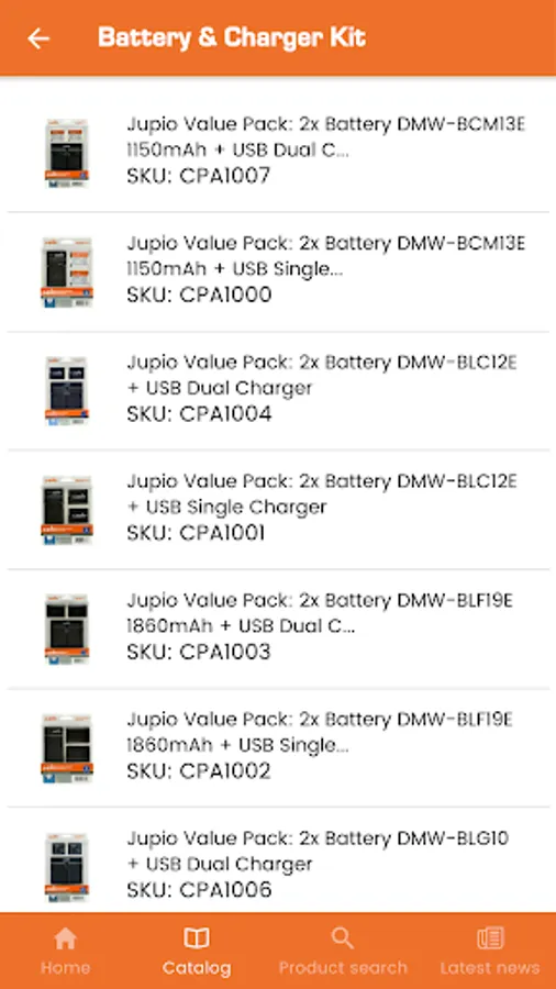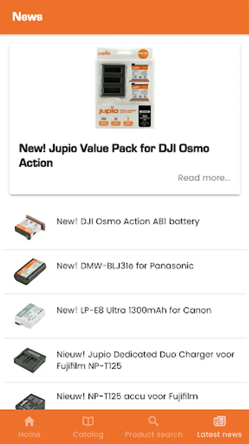 The Jupio Productfinder app shows the complete Jupio product portfolio.