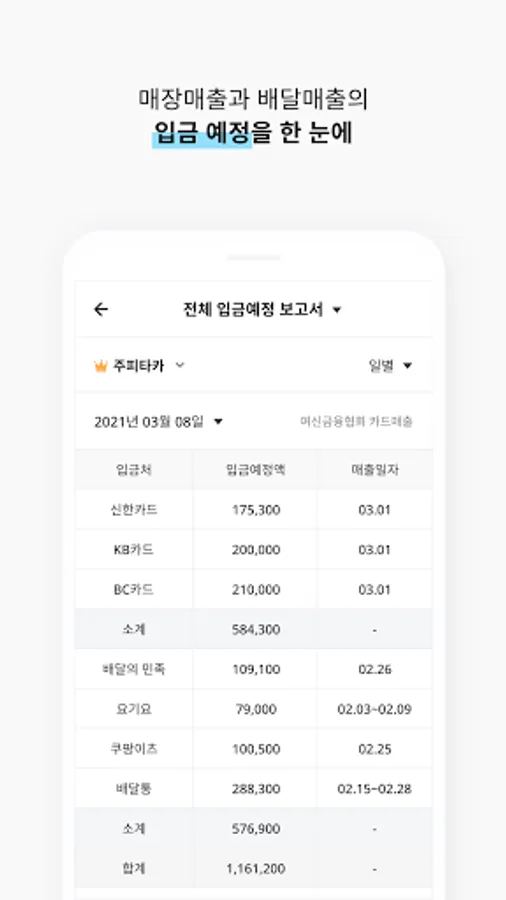 - Sales inquiry such as Baedal Minjok, Yogiyo, Coupang Eats, etc.