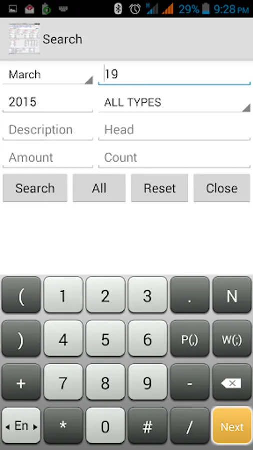 Pressing Import button acquires transaction entries from the from a backup file, either saved previously or received through sharing. Depending upon the number of records, the app may freeze for a while. Wait with patience till the app becomes sane again.