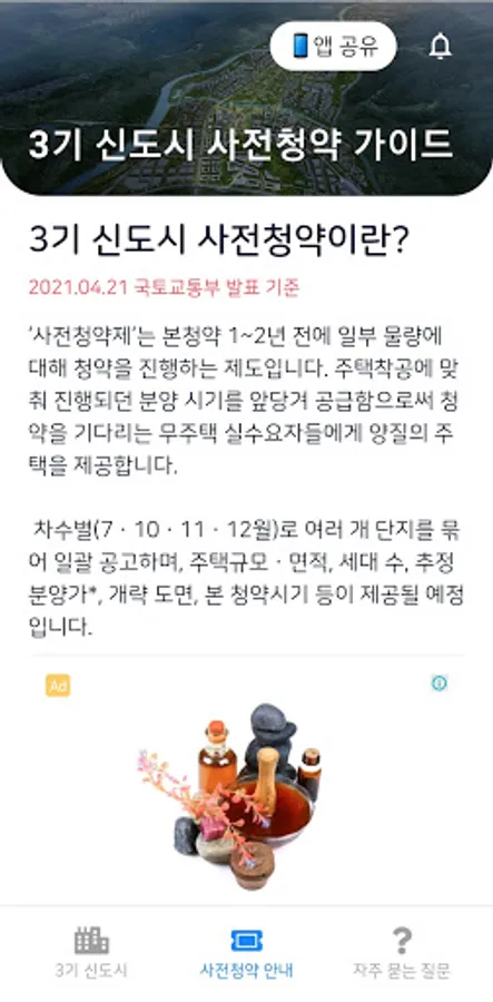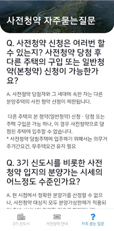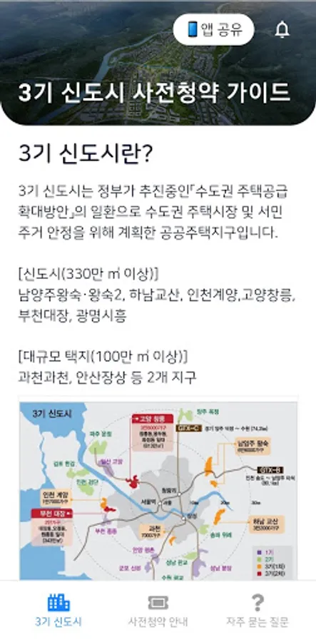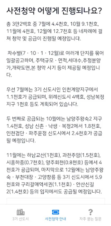 This application is a guide application for pre-subscription for the 3rd new city scheduled to proceed from July 2021. You can check the pre-subscription schedule, application method, conditions, and frequently asked questions.