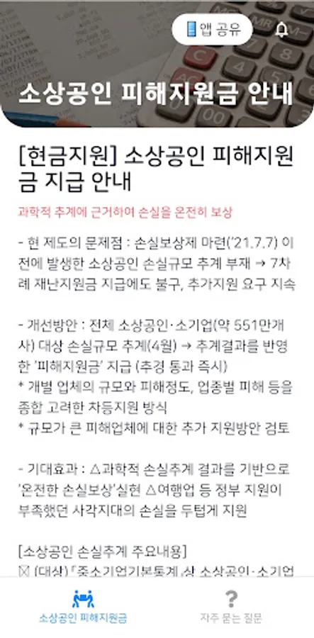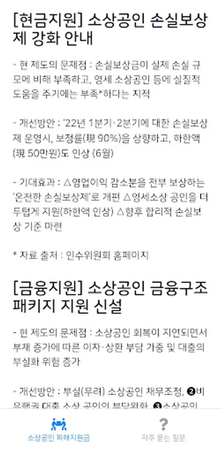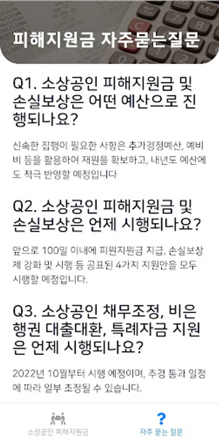 This application is a guide application for small business loss compensation and emergency livelihood stabilization support due to be paid after May 2022. You can check the payment standards, schedule, and frequently asked questions for loss compensation and emergency livelihood stabilization support.