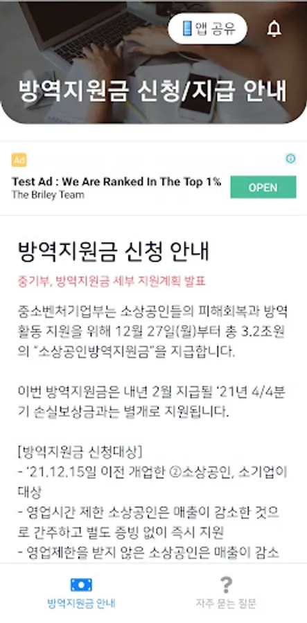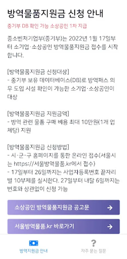 This application is a guide application for the quarantine subsidy and quarantine product subsidy due to be paid from 2022. You can check the payment standards, schedule, and frequently asked questions for small business quarantine subsidies and product subsidies.