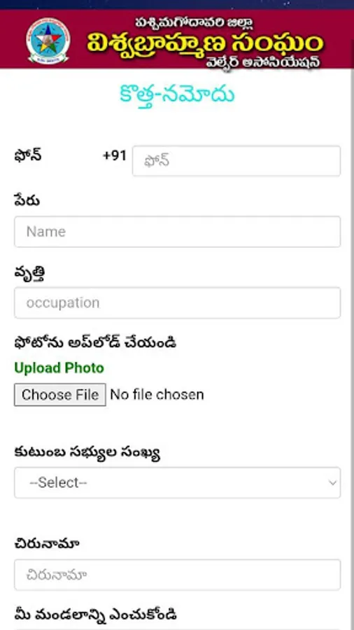 Vishwa Brahmana Sangam Welfare Association West Godavari District Andhra Pradesh, is a group of families stay in the district, this association was made for helping each other in the welfare of its members.