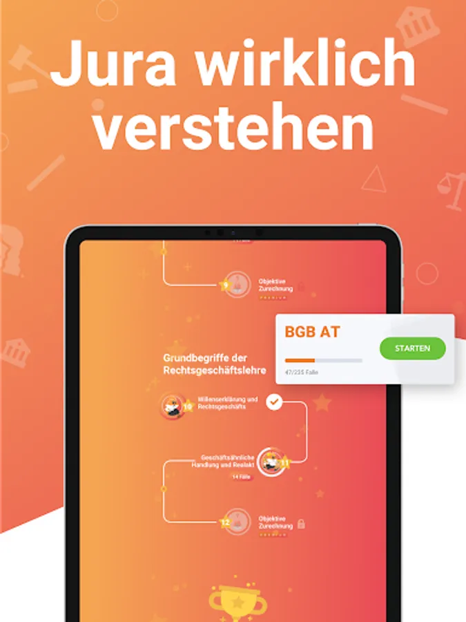 Regardless of whether you are learning BGB AT for the first time or are about to take the 1st or 2nd state examination in law, we offer you 40,000 professionally created tasks especially for you.
