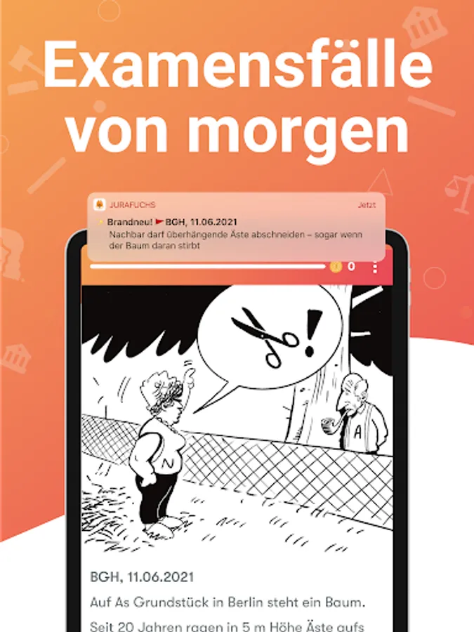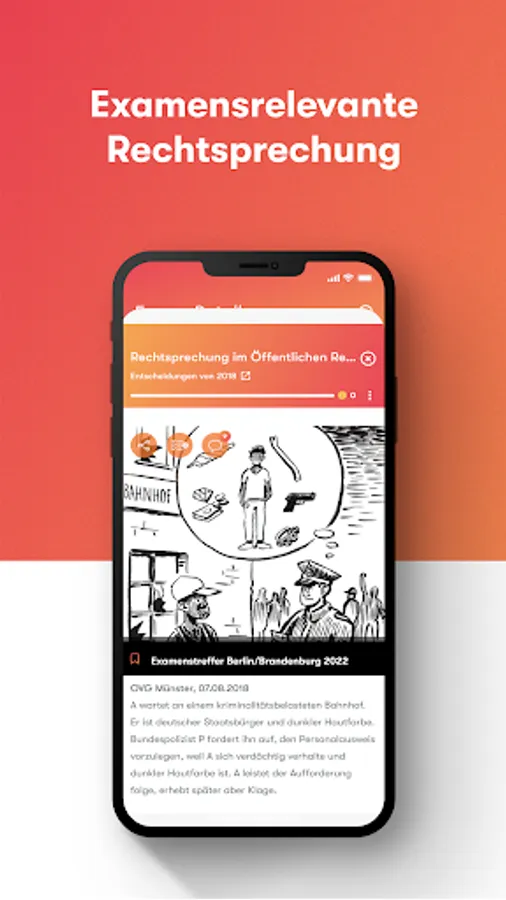 Our editorial team observes legal events in Germany and identifies your exam cases of tomorrow. In 2022 alone, the current court decisions that we prepared in the app were used more than 20 times in exams in the 1st and 2nd state exam.