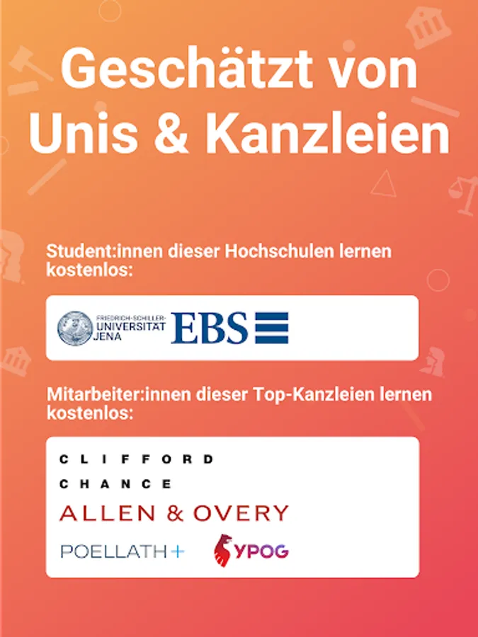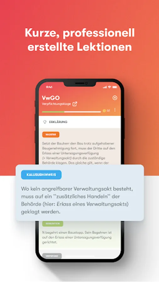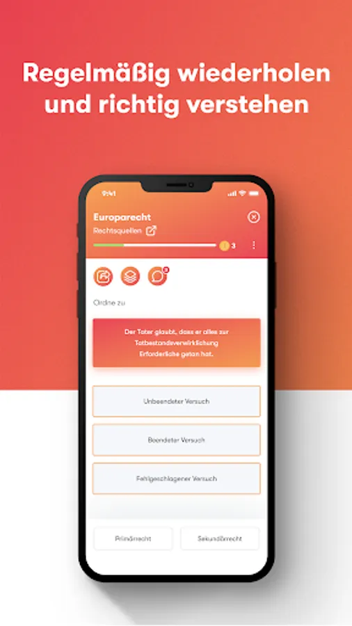 Our team of more than 30 top lawyers creates all course content specifically for German law studies and tailors it to your learning needs. This is how you learn law in the app quickly and effectively.