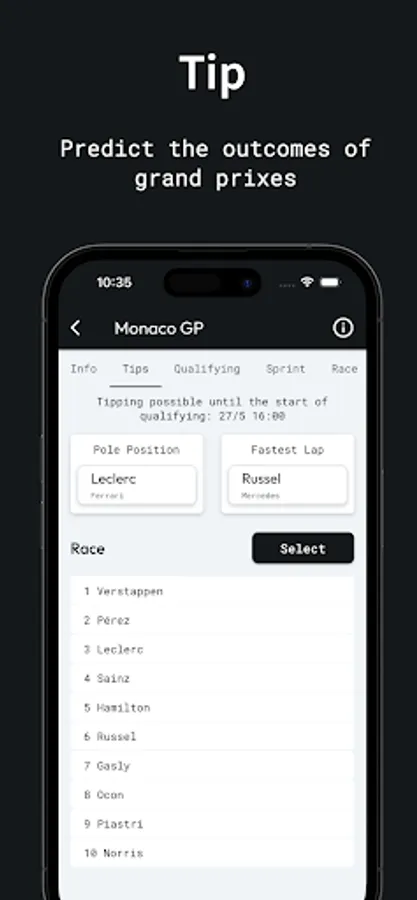 Introducing the F1 Tipping App - the ultimate destination for Formula 1 fans! Our app allows you to predict the outcomes of races and compete against other fans in leagues for free.
