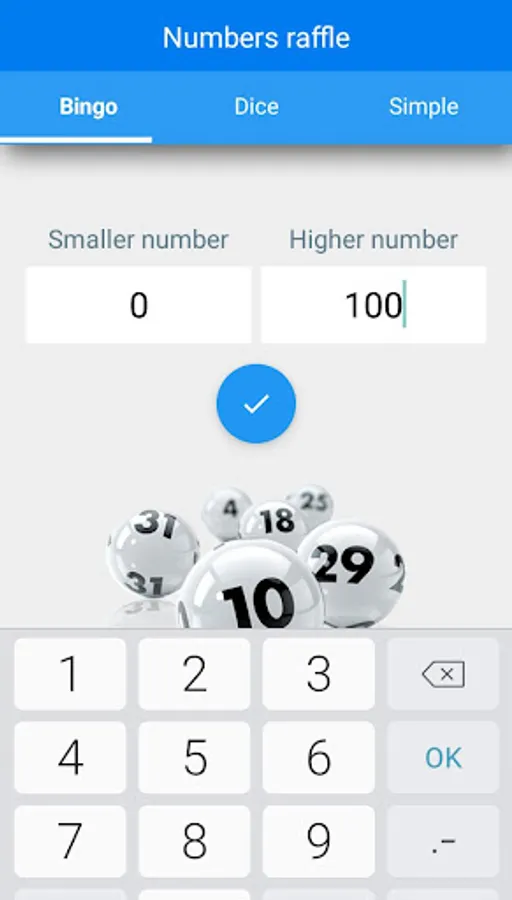 The Numbers can be raffled as a Bingo, with the history of numbers or in simple mode, just indicating if youyou want them to repeat themselves. it is also possible to simulate the dice raffle.