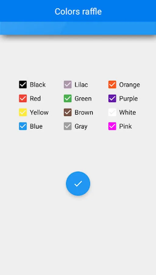 The app also allows you to raffle colors, allowing you to choose the colors that do you want to raffle.