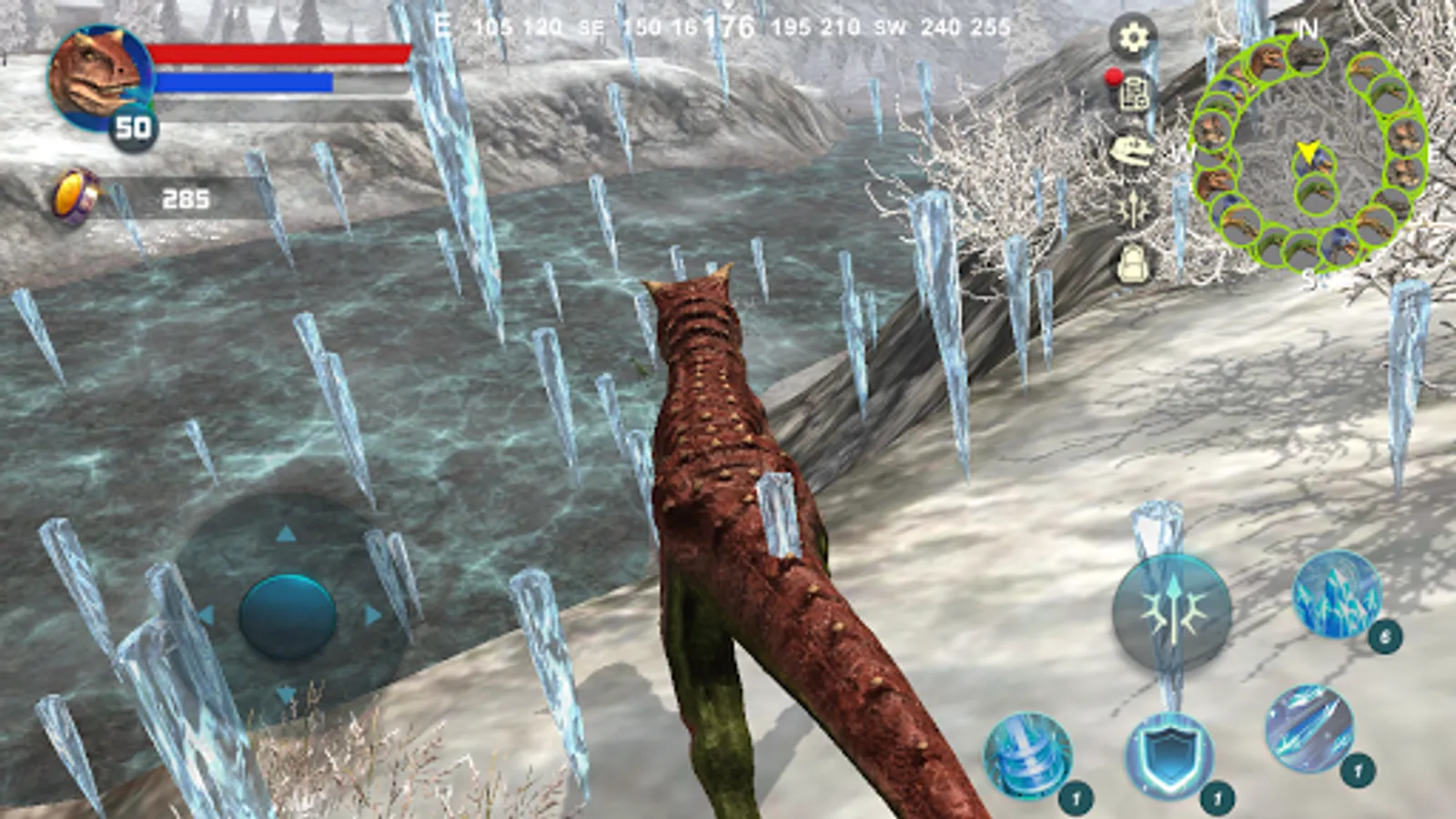 Maintain your health and energy by eating dinos and drinking water, explore massive world, fight other dinosaurs to become more powerful