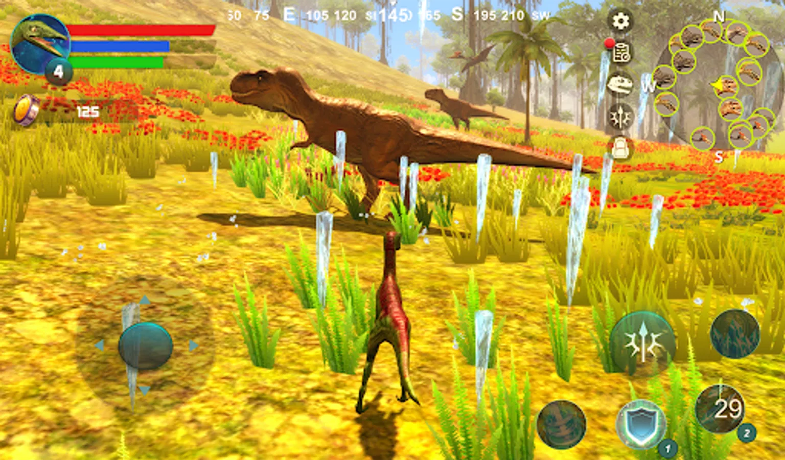 Maintain your health and energy by eating dinos and drinking water, explore massive world, fight other dinosaurs to become more powerful