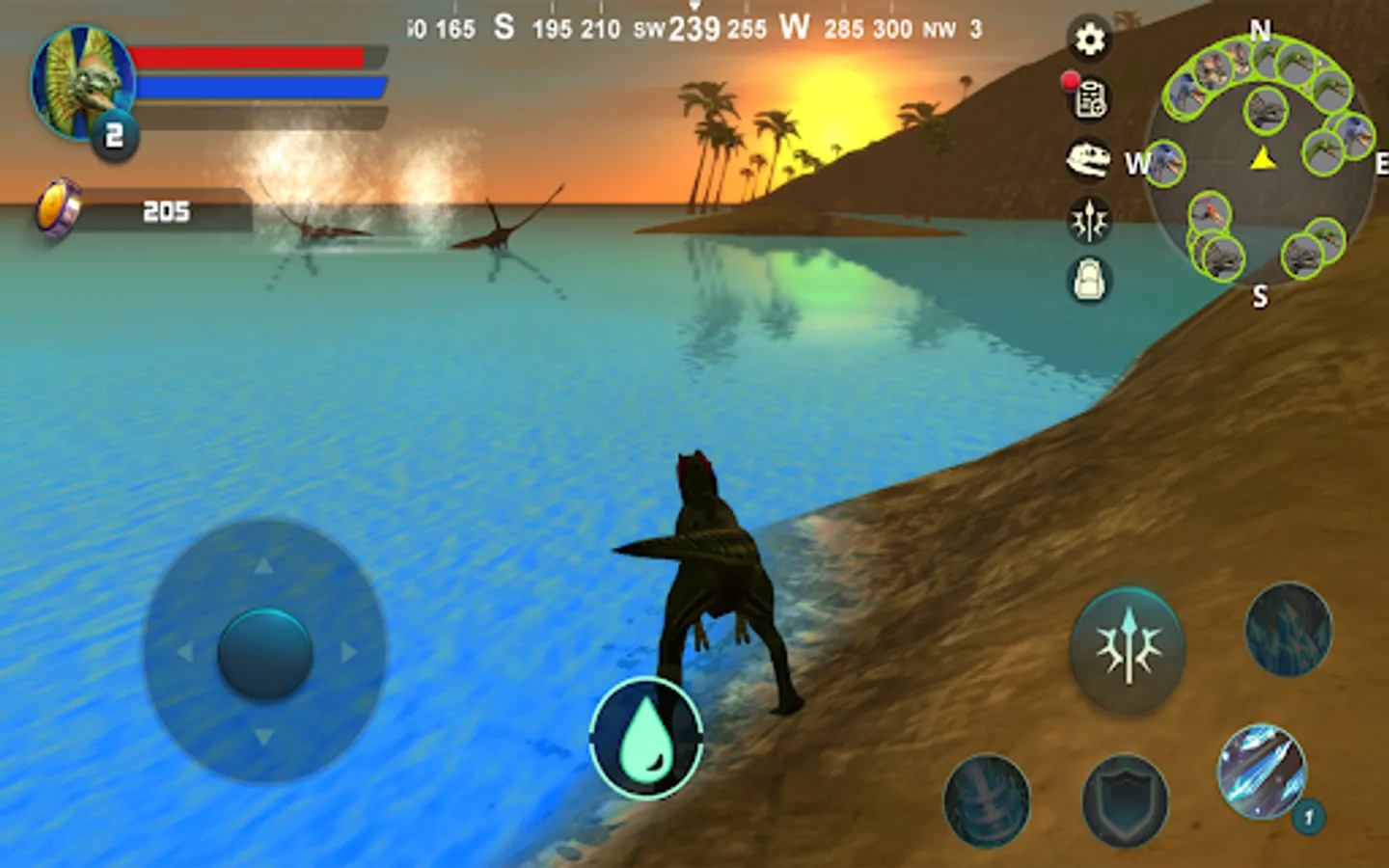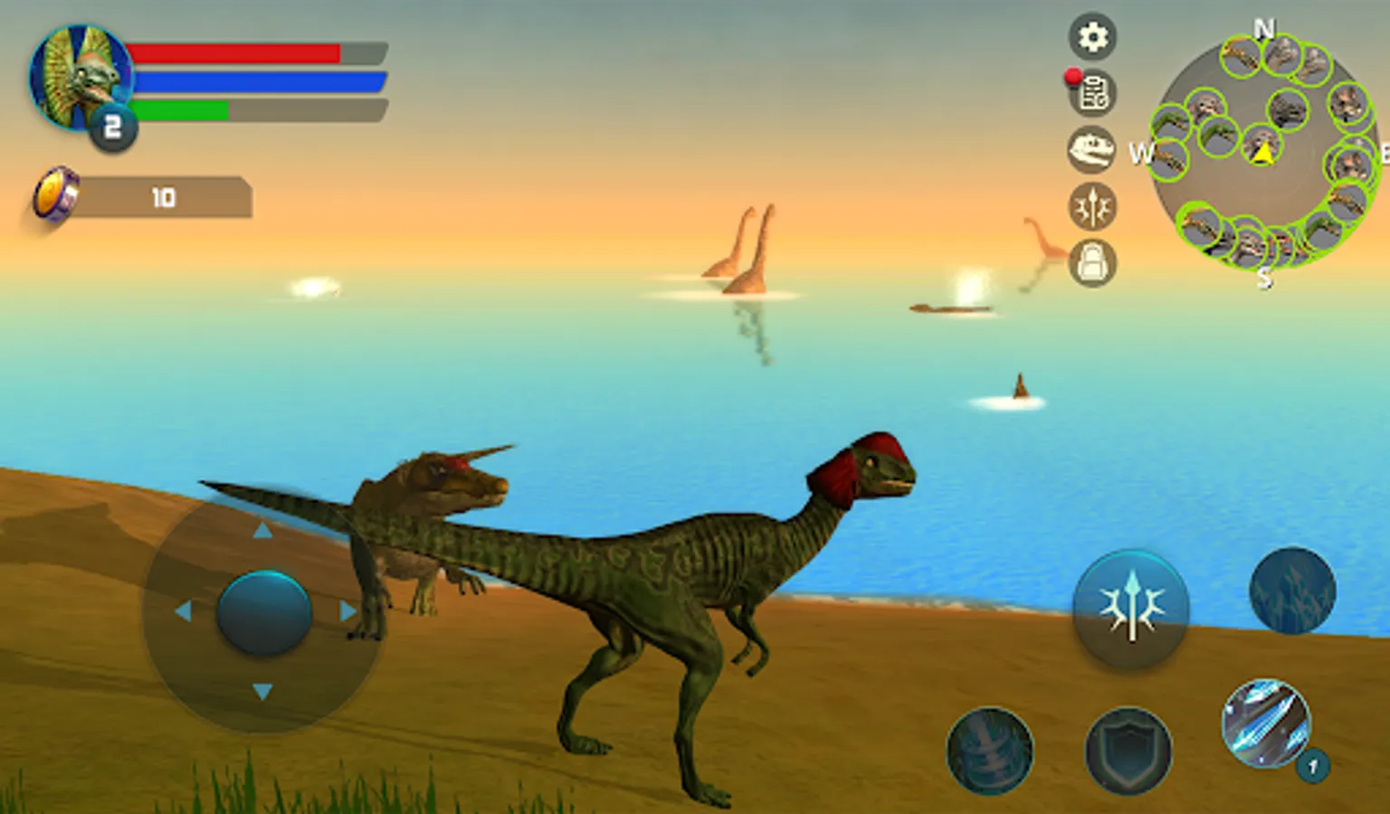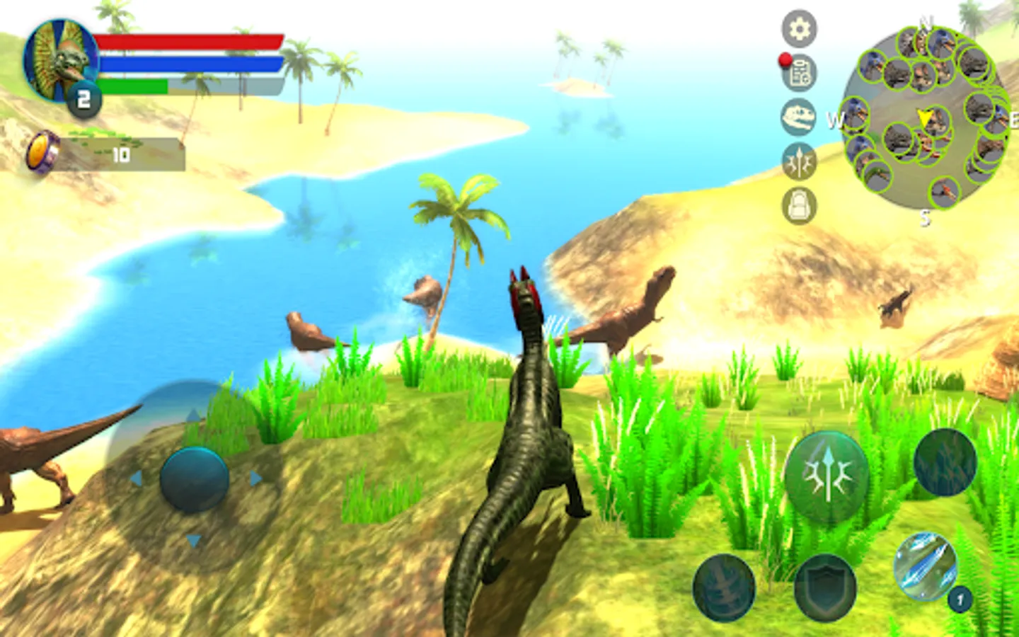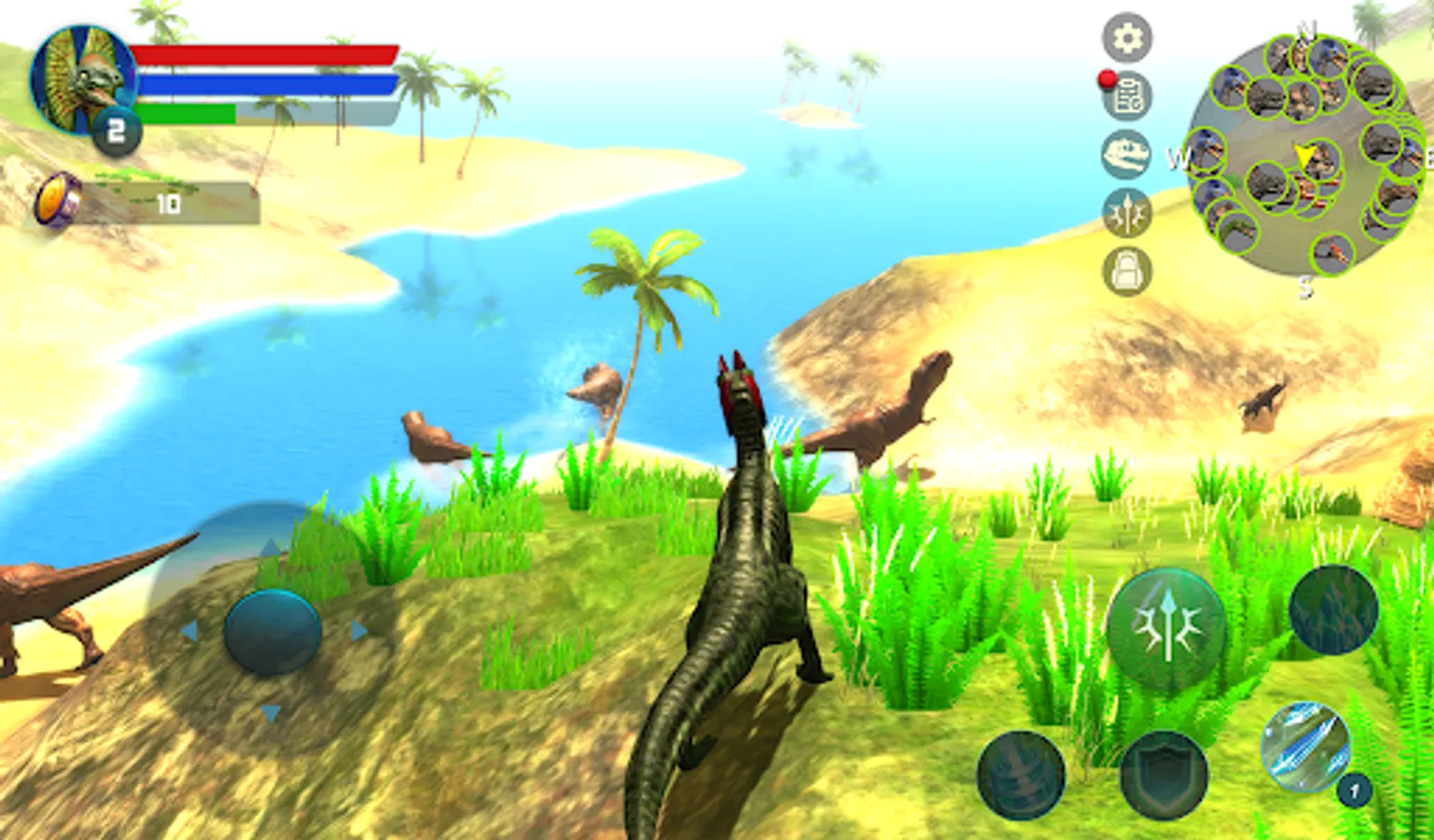 Maintain your health and energy by eating dinos and drinking water, explore massive world, fight other dinosaurs to become more powerful