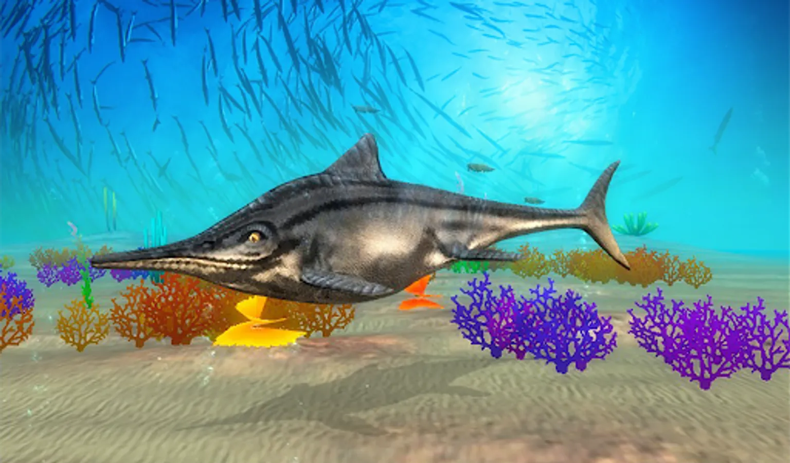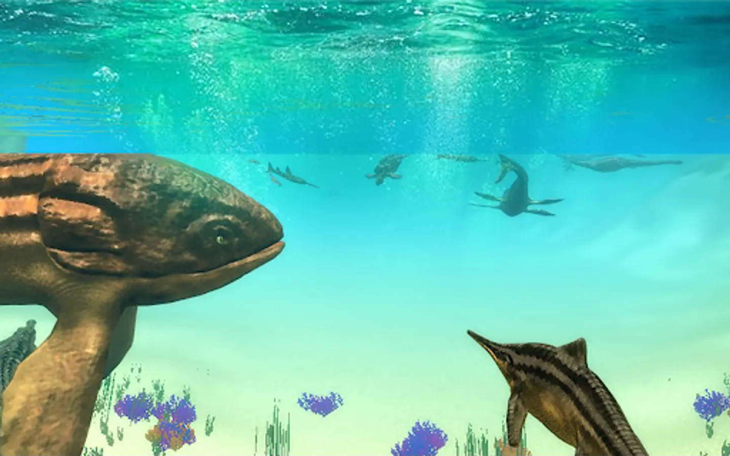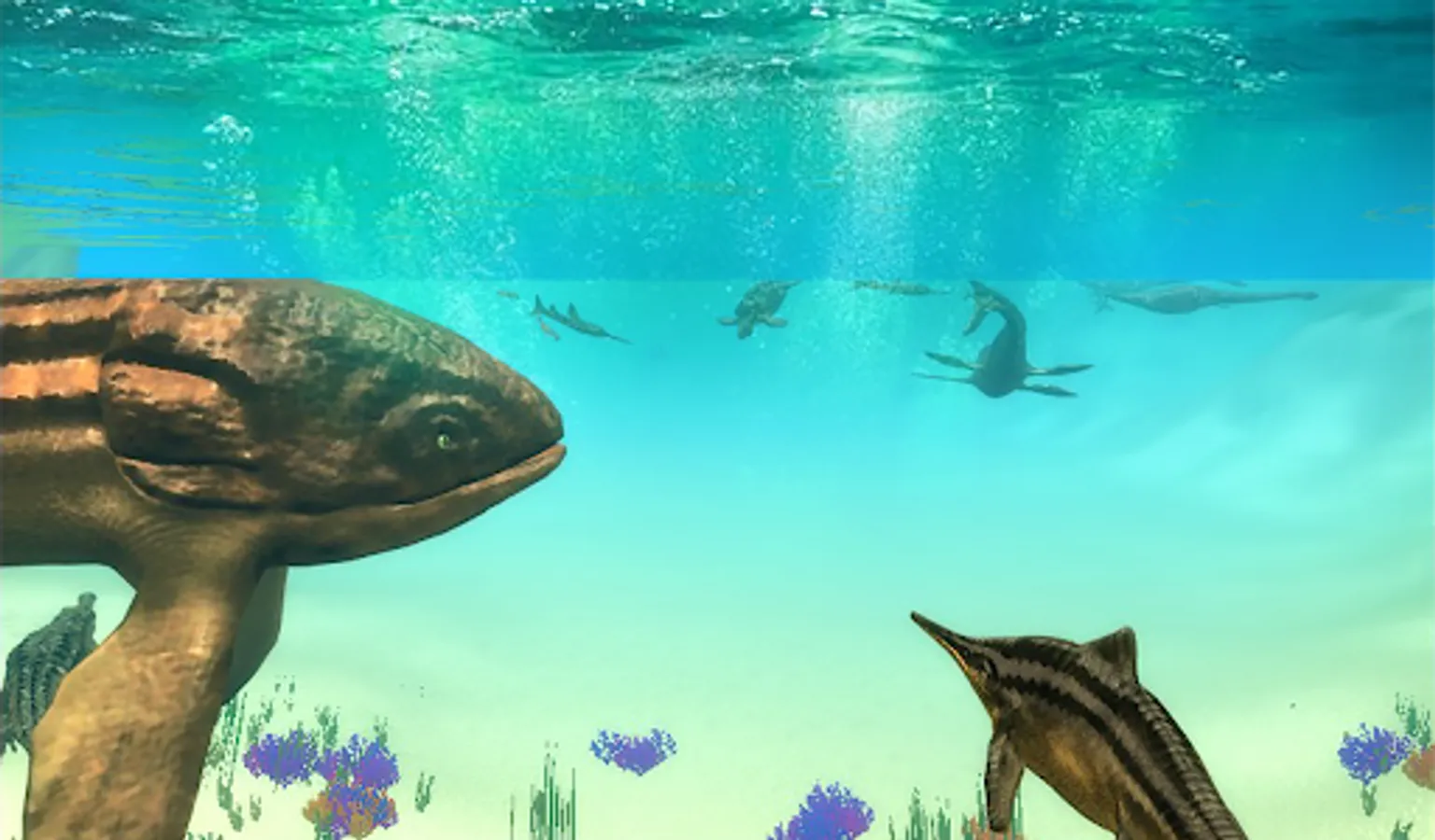 Dive into the world of ancient underwater nature with our new Ichthyosaurus Simulator and become a ancient ocean dinosaur- a Ichthyosaurus! Try living and under dinosaur life - complete quests, fight other dinosaurs and explore ocean bed.