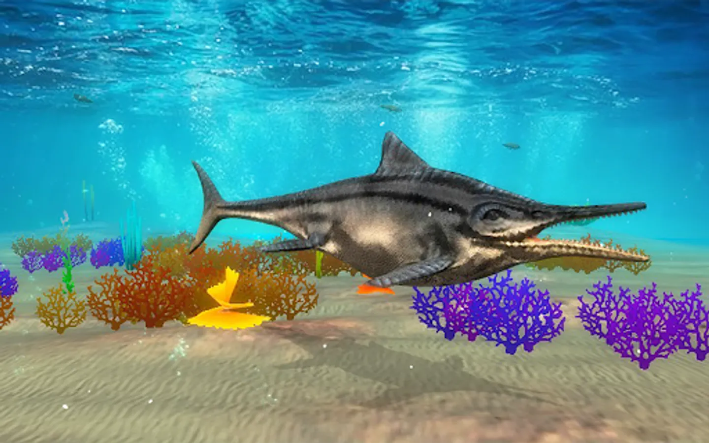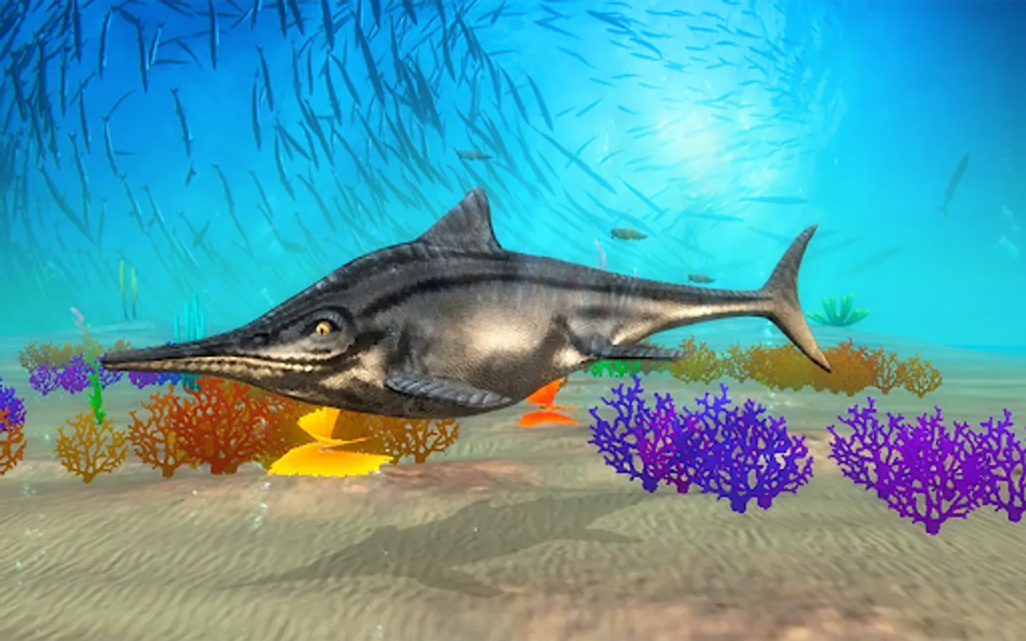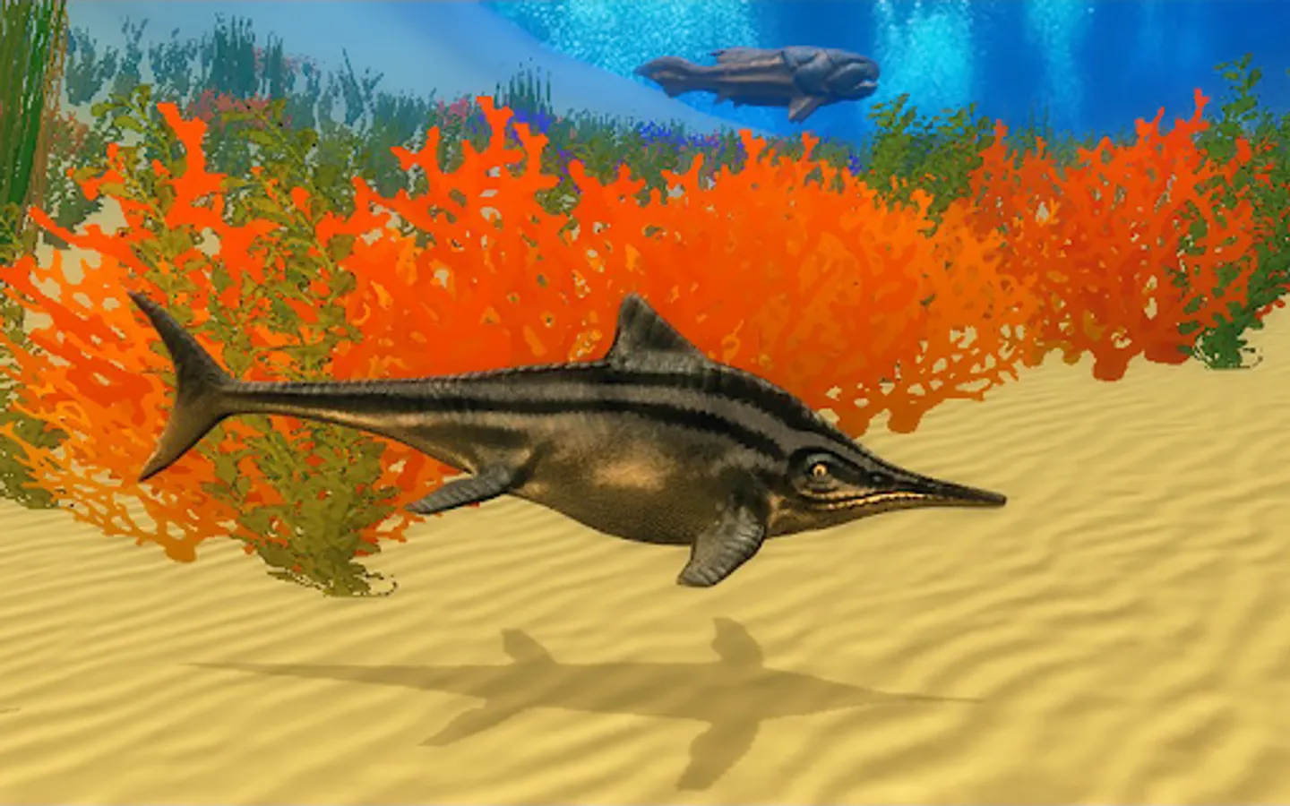 Dive into the world of ancient underwater nature with our new Ichthyosaurus Simulator and become a ancient ocean dinosaur- a Ichthyosaurus! Try living and under dinosaur life - complete quests, fight other dinosaurs and explore ocean bed.