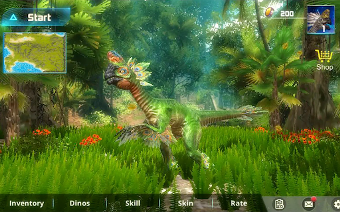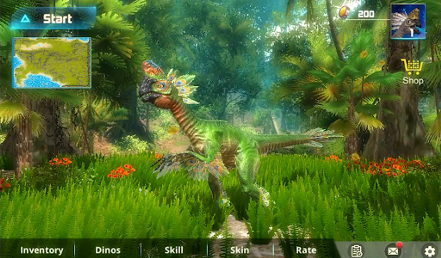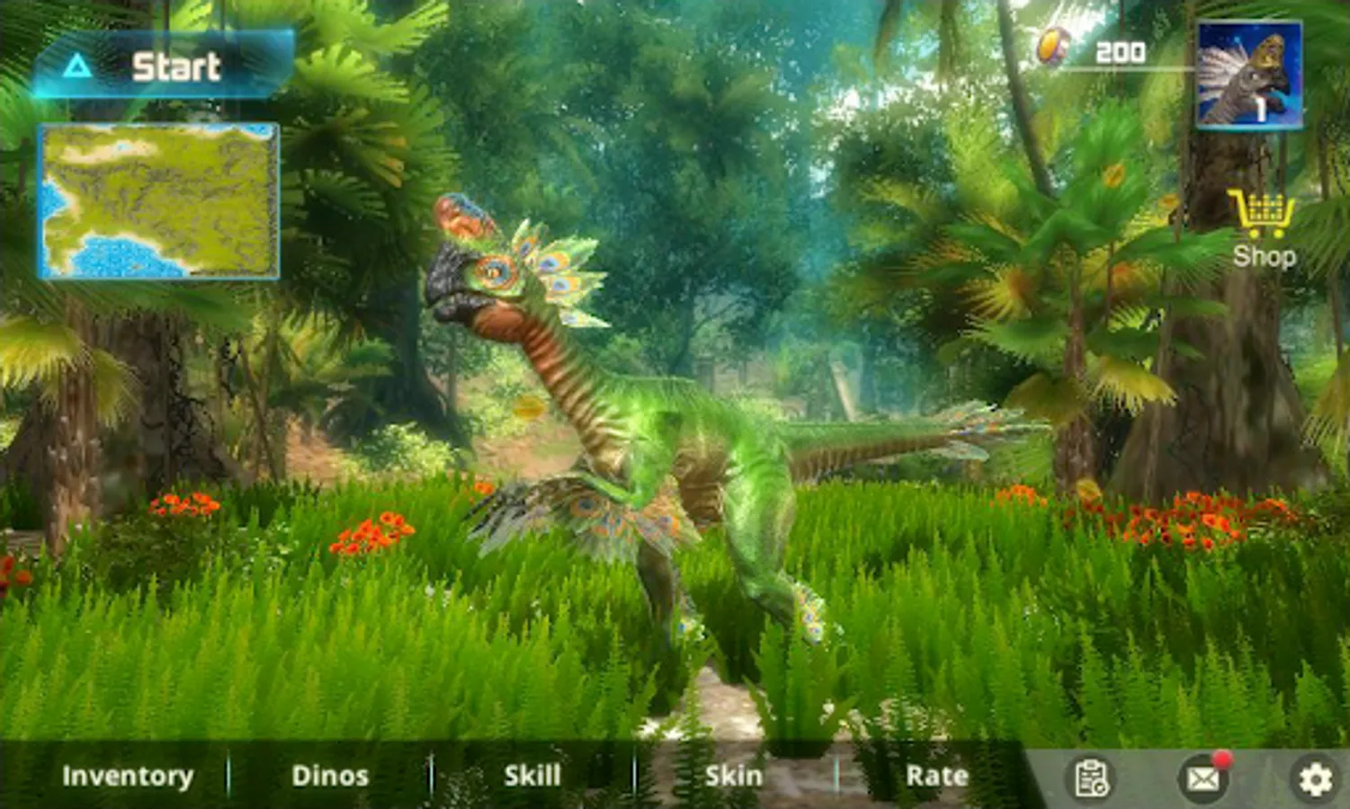 Maintain your health and energy by eating dinos and drinking water, explore massive world, fight other dinosaurs to become more powerful