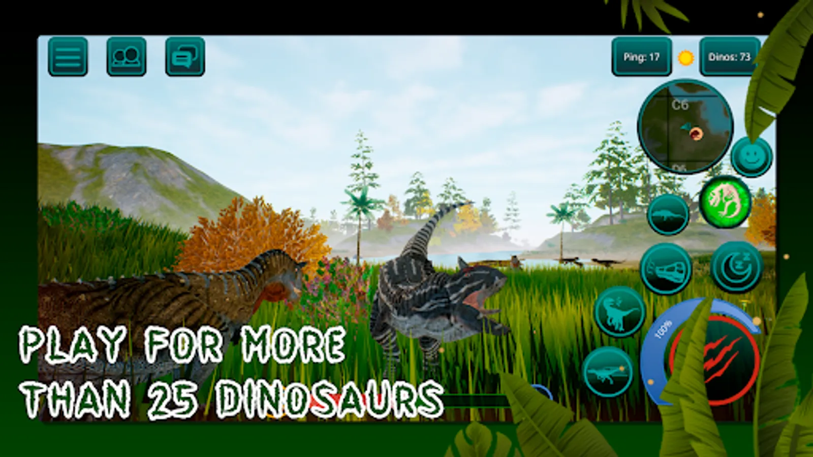 Dinosaur Game The Cursed Isle is a realistic online dinosaur simulator set in a Jurassic world. Enjoy a variety of dinosaurs, realistic graphics and a large map that is an island. Choose your dinosaur and start survival. Play with your friends and also with players around the world. All popular dinosaurs are represented in the game, starting, for example, with predators such as: Tyrannosaurus, Spinosaurus, ending with herbivores such as Triceratops, Ankylosaurus, there are more than 23 dinosaurs in the game, including flying and swimming species, and all of them are waiting for you in a realistic dinosaur simulator game.