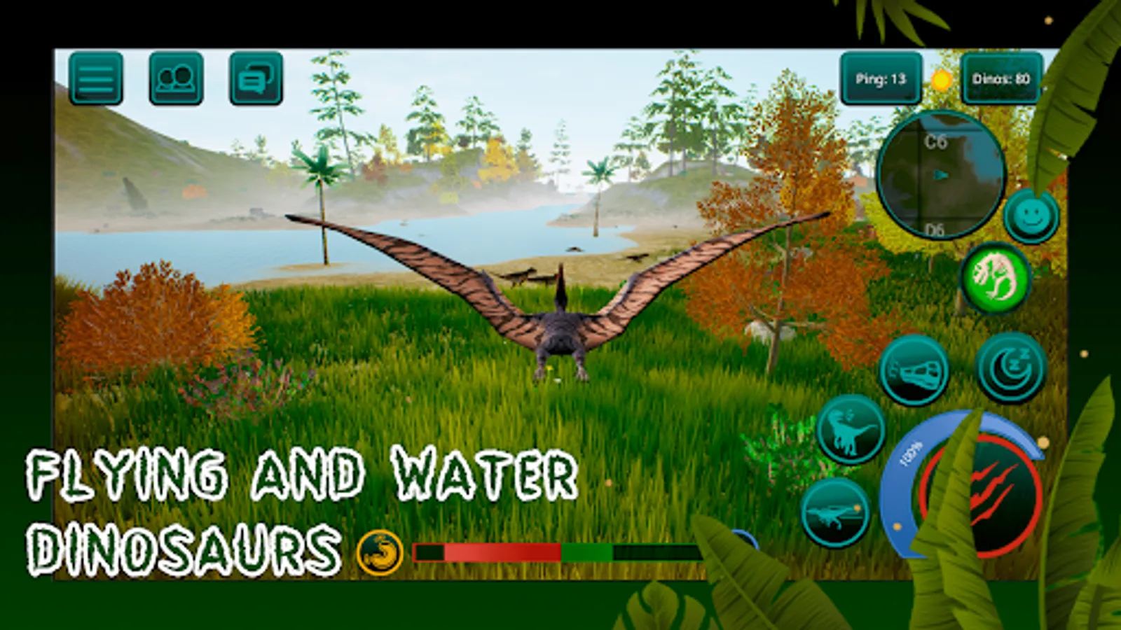 2. First, the player needs to select a dinosaur. Remember - this is your Dinos personally! In the Dinosaurs game, there are not only carnivorous dinosaurs and herbivorous dinosaurs, but also flying ones, such as pterodactyl, Players can unite in flocks with carnivores of their own species in order to resist other species, and most importantly, survive!