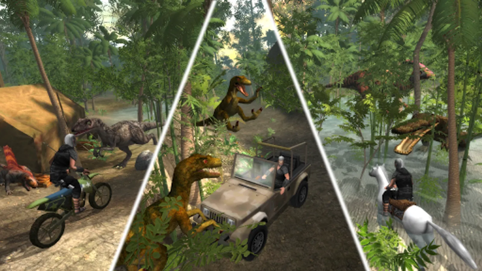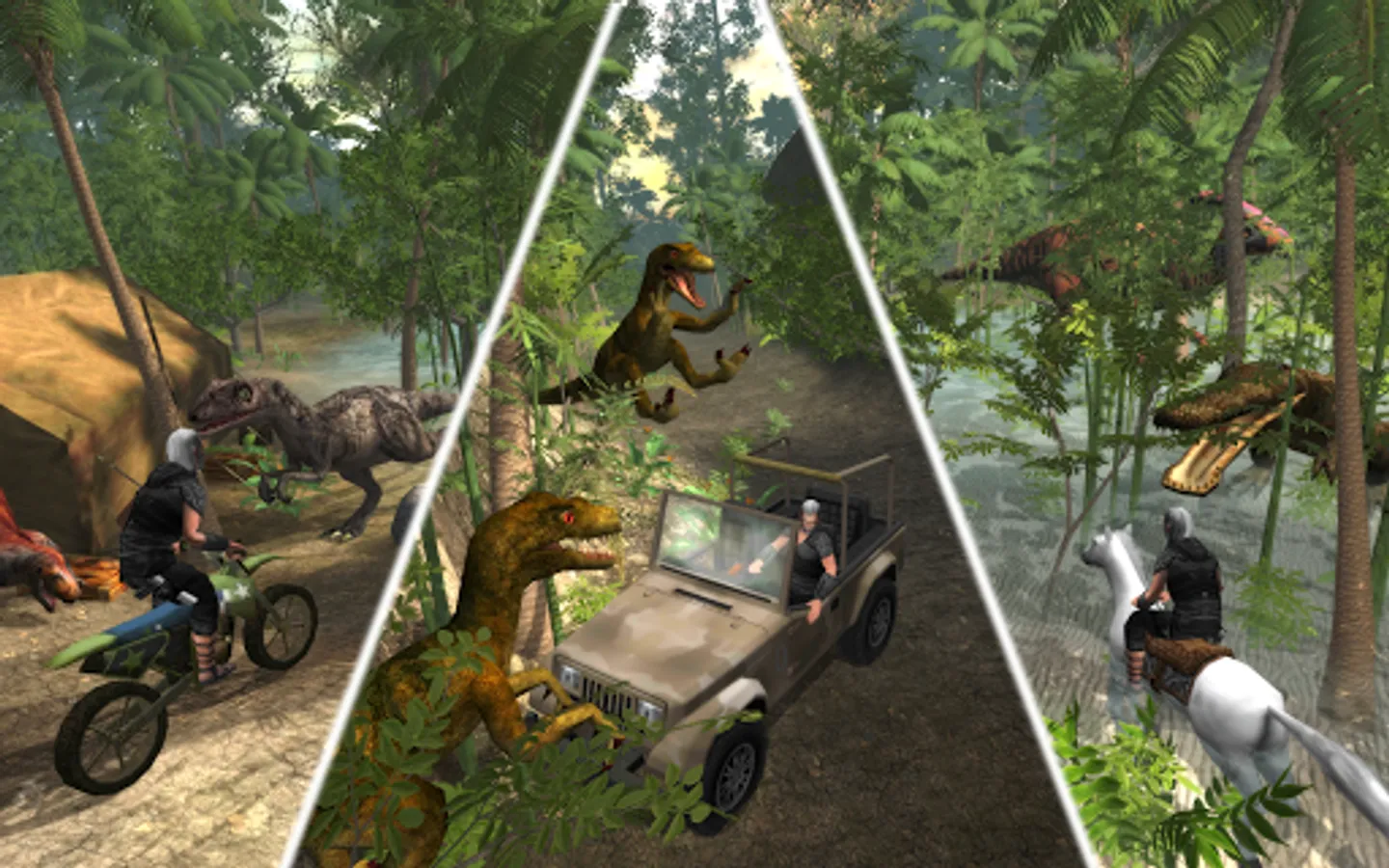 Travel by Motorbike you can Somersault off the bike to be right in the middle of the action, Sniper rifle long range kills from within your 4x4 Off-Road Vehicle, ride by Boat or maybe you prefer to run in and out of the action by foot, your faithful friend - Horse can be called by your whistle to get you out of those tight dino situations.