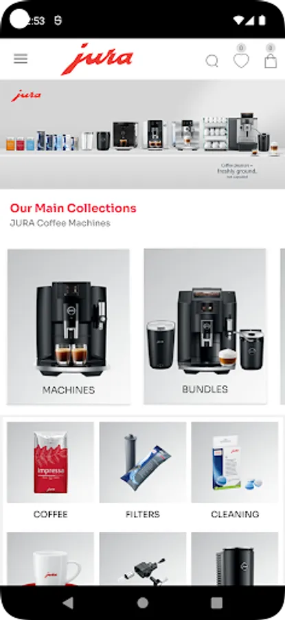 This App allows you to purchase all JURA Machines and related Articles, like Accessories, Coffee Beans and more.