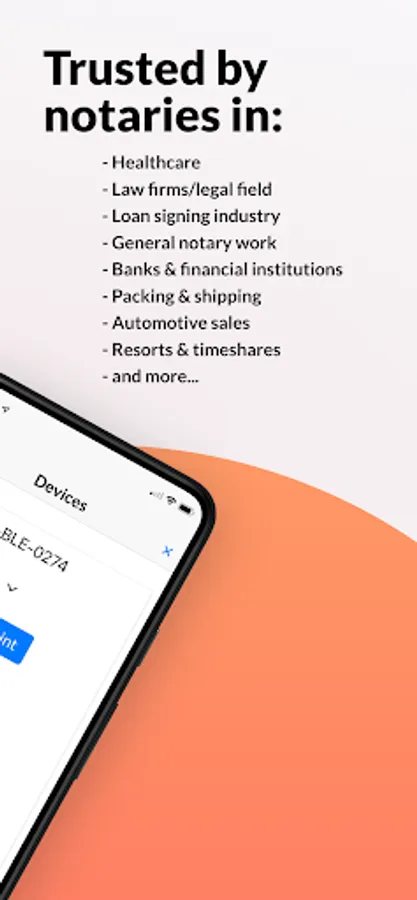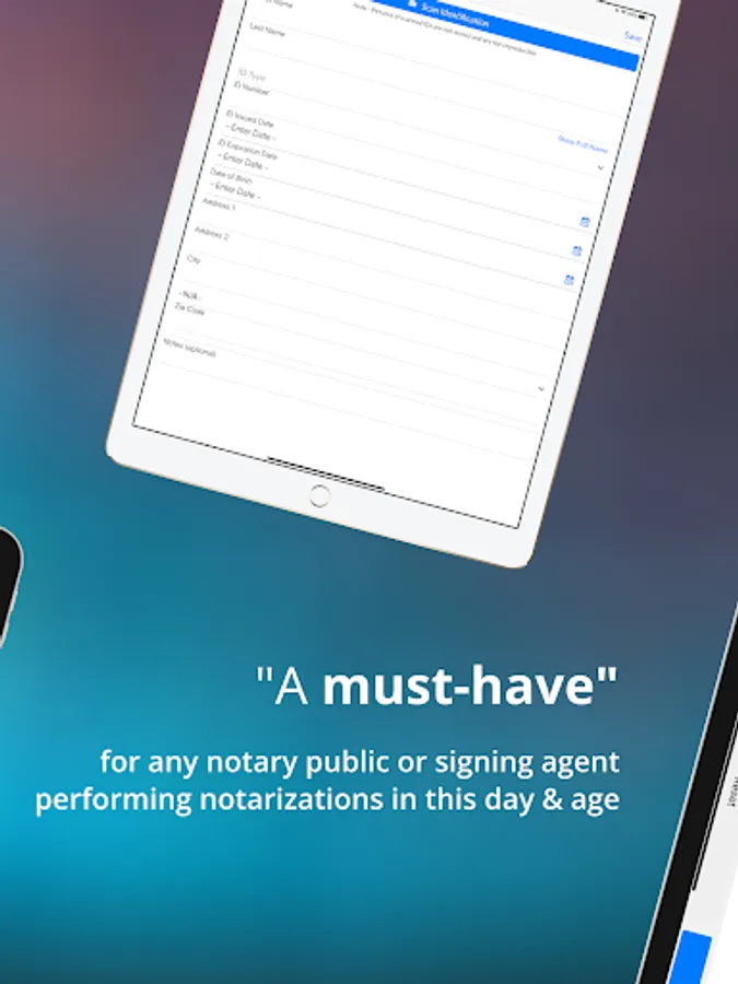Technology - The Notary eJournal safely and securely implements features meant to truly make your job easier. Key features include using your device location to input location information, taking a picture of a signers ID and having all important information automatically input in the appropriate fields, and using bluetooth thumbprint technology to capture any necessary thumbprints.