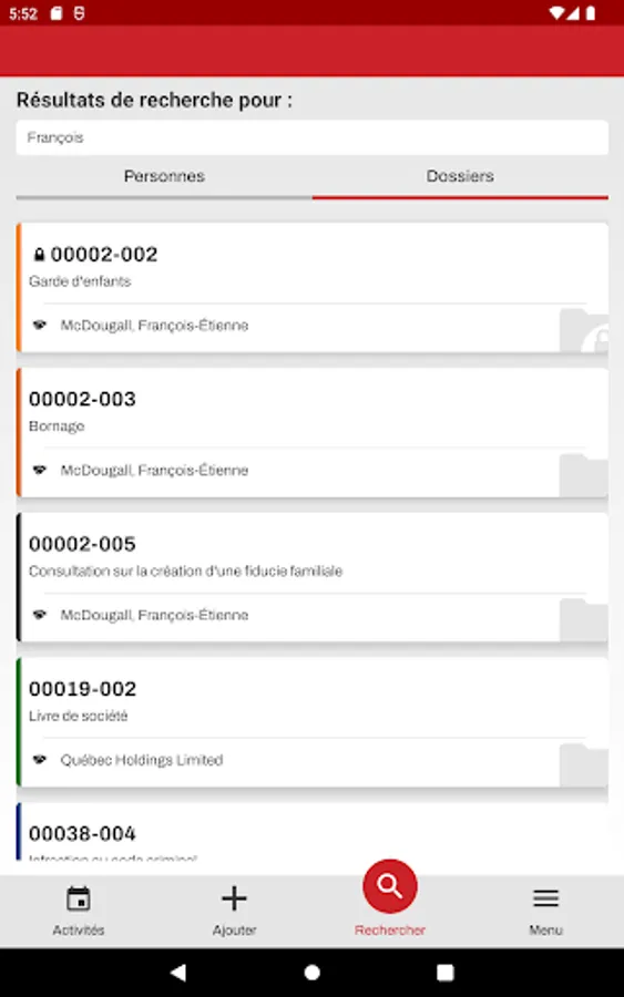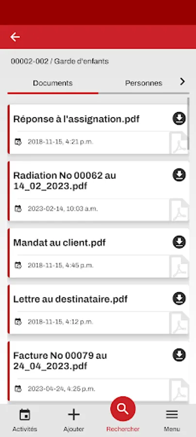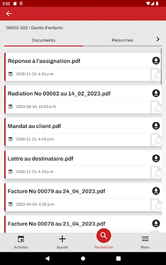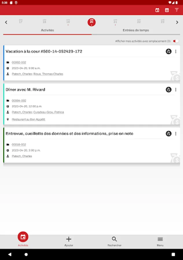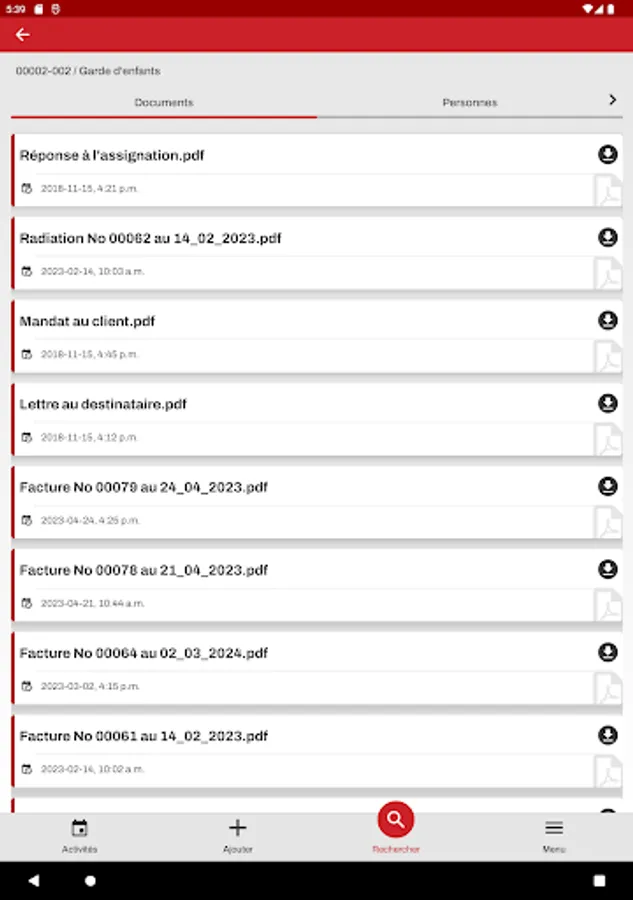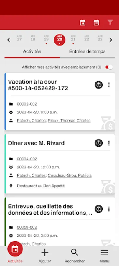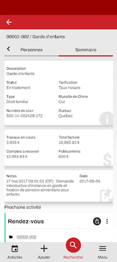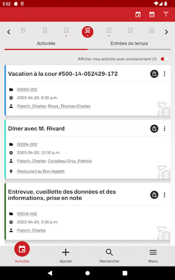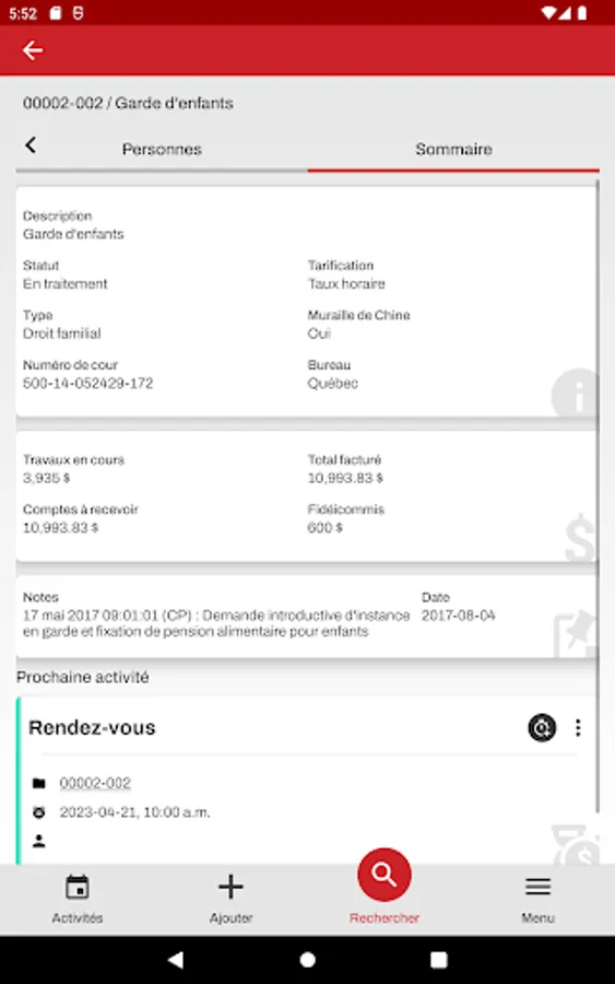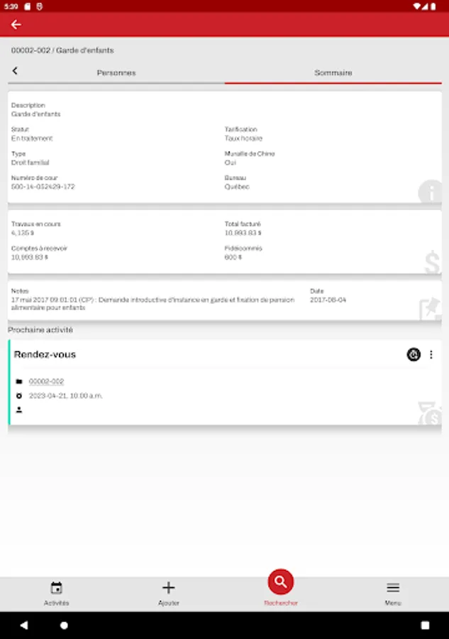 Access included with a JurisEvolution Web subscription, allowing you to gain access on the go to your activities calendar, time entries and relevant informations of your matters: documents, involved people and their contact informations, notes and financial summary.