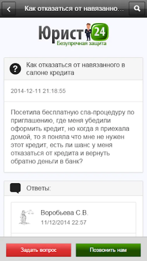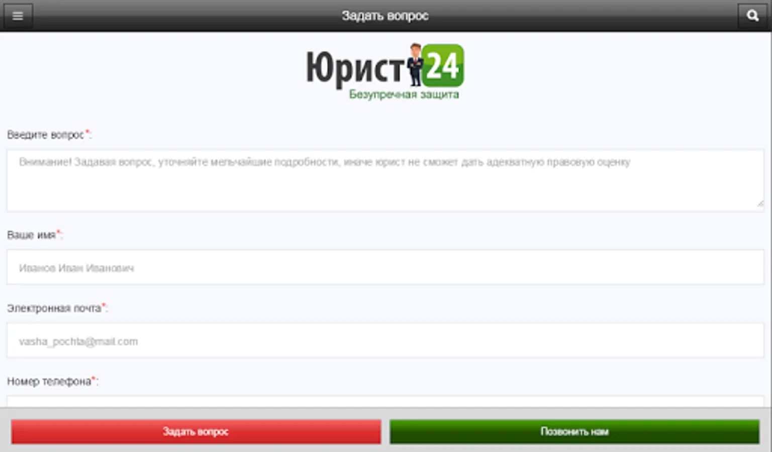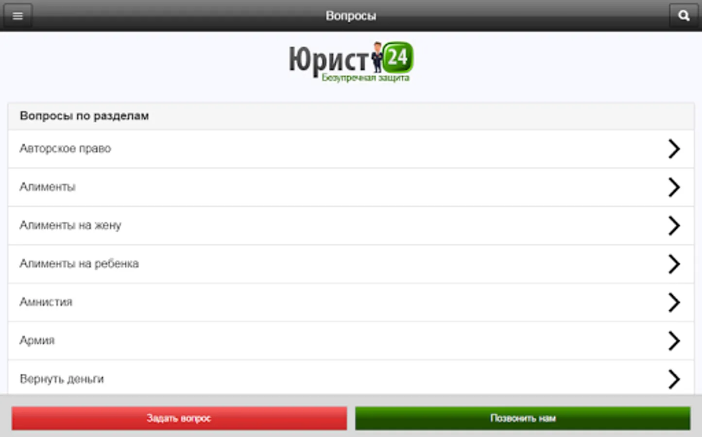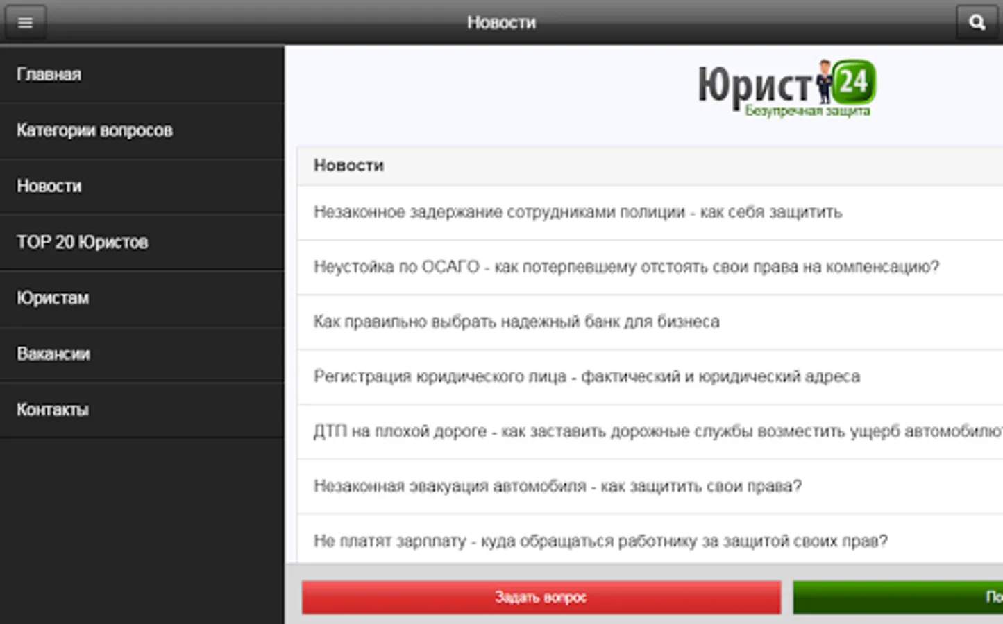The application works on the basis of one of the largest corporate websites Jurist24.com (Yurist24) on which lawyers provide online answers.