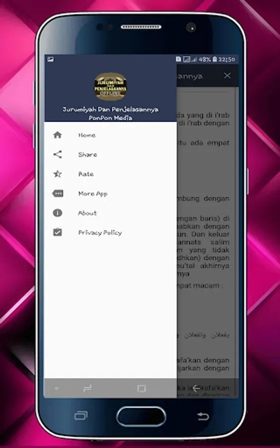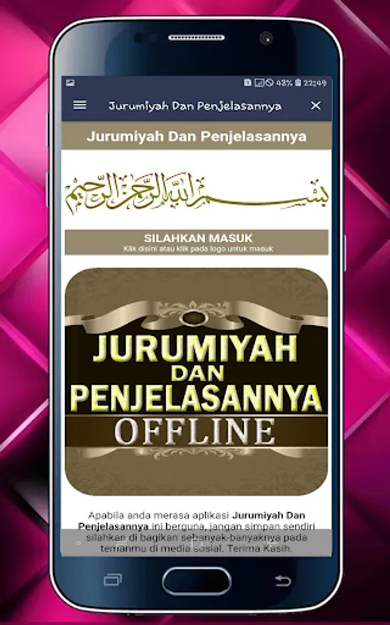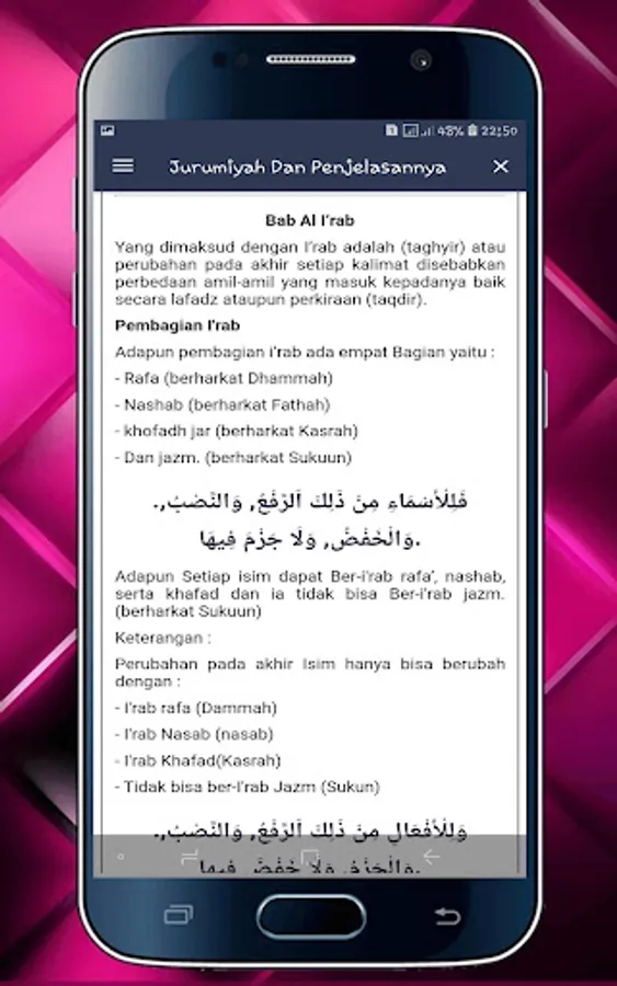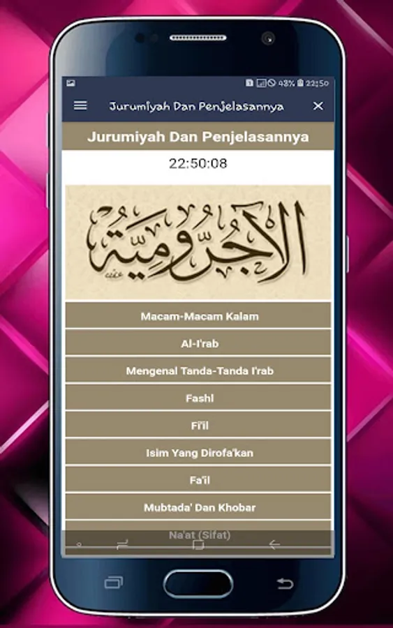 Alhamdulillah, thanks be to Allah, finally PonPon Media has successfully completed the Jurumiyah application and its explanation. Al-Ajurrumiyah or Jurumiyah (Arabic: الآجُرُّومِيَّة) is a small book on Arabic grammar from the 7th century AH/13 AD. This book was compiled by a linguist from Morocco named Abu Abdillah Sidi Muhammad bin Daud Ash-Shanhaji alias Ibn Ajurrum (d. 1324 AD).