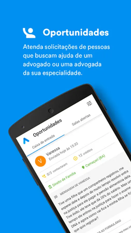 • Receive messages from people who are looking for a lawyer at the Directory of Lawyers in Jusbrasil;