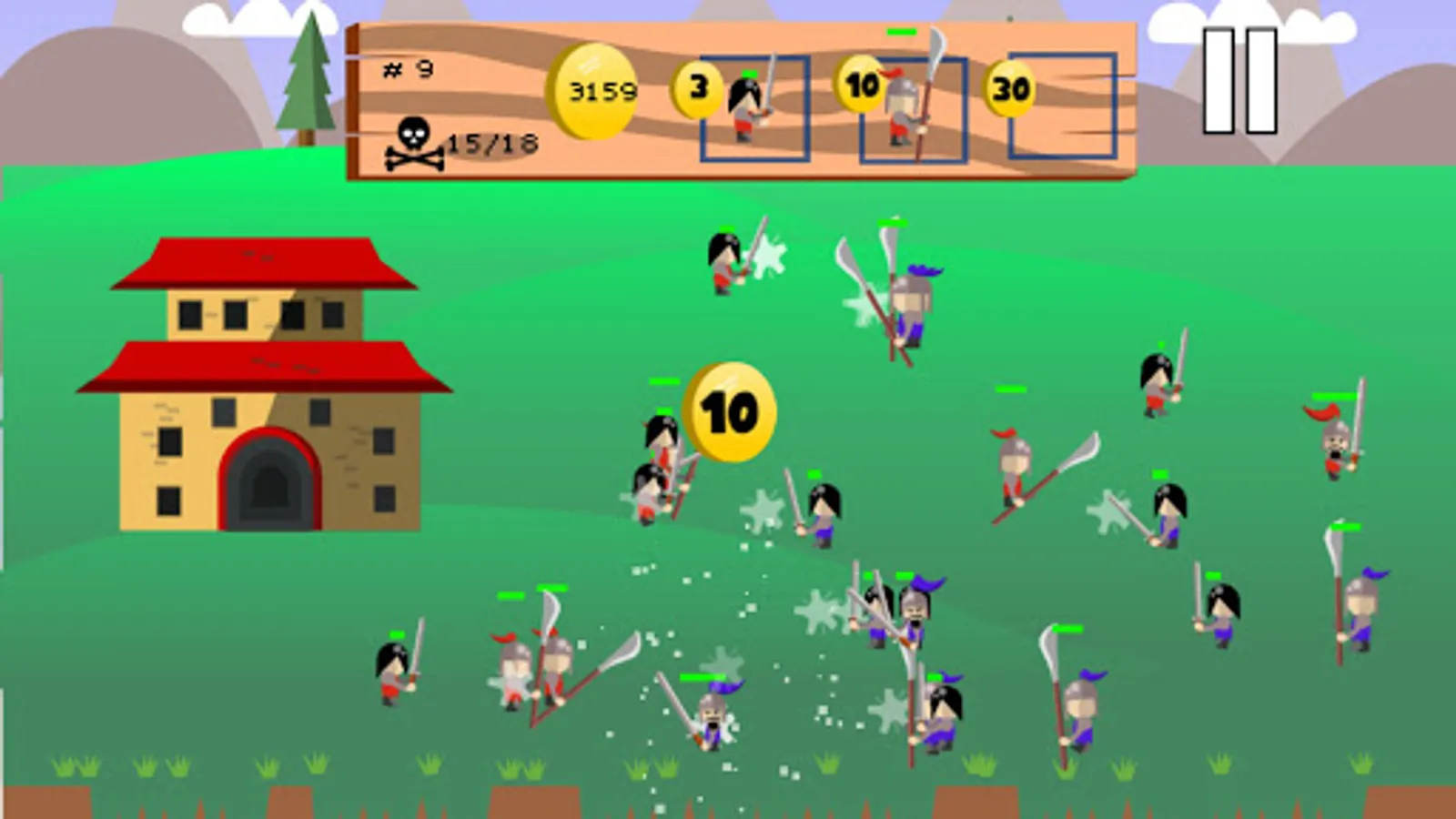It is the warring states period in Chinese history. You are the leader of the state of Qin. Warriors under your command belong to 3 different groups. They are sword warrior, spear warrior and general. In the battle field, each warrior has different skills. The more skilful warrior cost more to train. The general is the strongest. The general can easily defeat the spear warrior and the sword warrior. The spear warrior can easily defeat