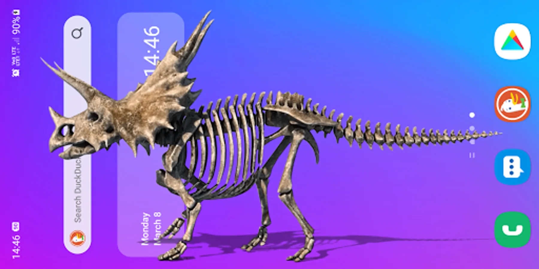 This cool app will display very realistic animation of walking dinosaurs’ skeletons. Virtual fossils of Tyrannosaurus and Triceratops will be walking along the screen of your phone. Visualization of extinct reptiles will be displayed above all currently working applications. You can use your favorite social network, browse internet or play a game and you will still see walking animals. If you are fed up with dinos, you can remove them any time. Just select an option “Tap here to remove Dinosaur” from the top Android status bar.