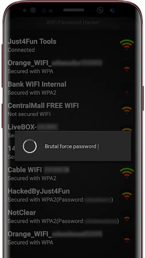 "WIFI Password Hacker Professional Prank" is a JOKE app. It is WIFI hacking simulator and it only pretends to break into secured WIFI network. All passwords are randomly generated and are not a real passwords stolen from the router. You WILL NOT HACK into any nearby WIFI network using this software.