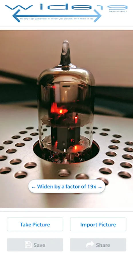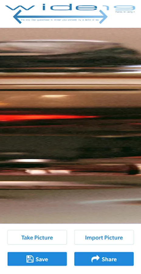 Have you ever taken a picture (photograph) with your digital portable phone and asked the following question to yourself? "I somewhat like this image I've just captured, but I simply wish there were a way for it to be nineteen times wider than it currently is." Well, look no further, because there is now finally an application that easily and seamlessly accomplishes just that. You can snap a quick pic, widen it into a patented #Widie and upload it to all of your favorite social media sites, right from the app itself. Or, or you can upload an already existing picture from your phone's storage, widen it into a patented #Widie and upload it to all of your favorite social media sites, right from the app itself. We hope you love elongating your favorite photos and sharing them to your online friends with Wide19. Thanks for using it.