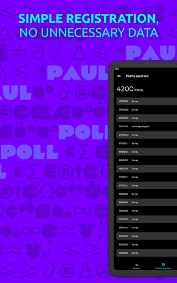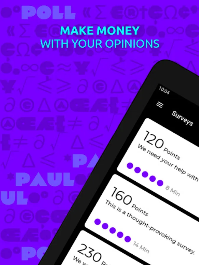 PollPaul offers you quick and easy access to a wide range of online surveys on current topics in business, sports, lifestyle or everyday life. By participating, not only can you earn bonus points with a cash value, you can also influence and actively shape future products and services. We display your earning potential and the duration of the surveys, and you decide for yourself which ones you want to take part in. In addition to PayPal and bank transfers, we offer you multiple ways to exchange your bonus points for money. Alternatively, you can use your opinion to support climate protection projects, and we will plant trees in exchange for your participation. Your participation is always free and voluntary. Get started now, complete surveys and earn cash or do good.