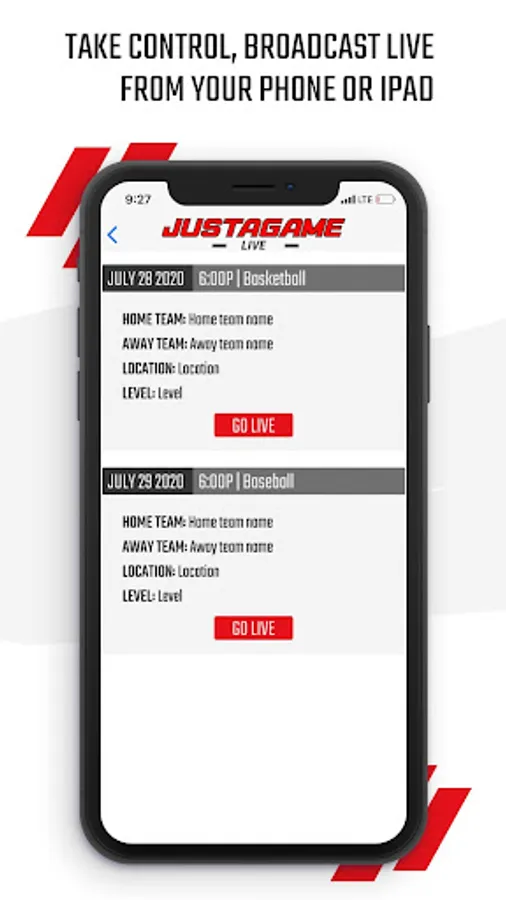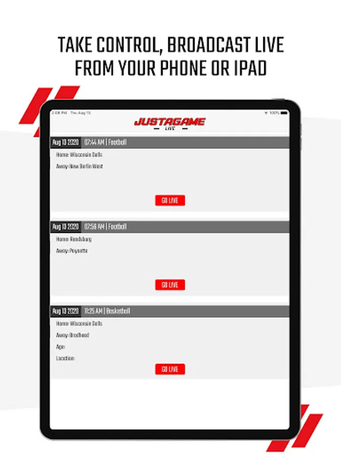 - Broadcast a LIVE streaming event to JustAgameLive’s website