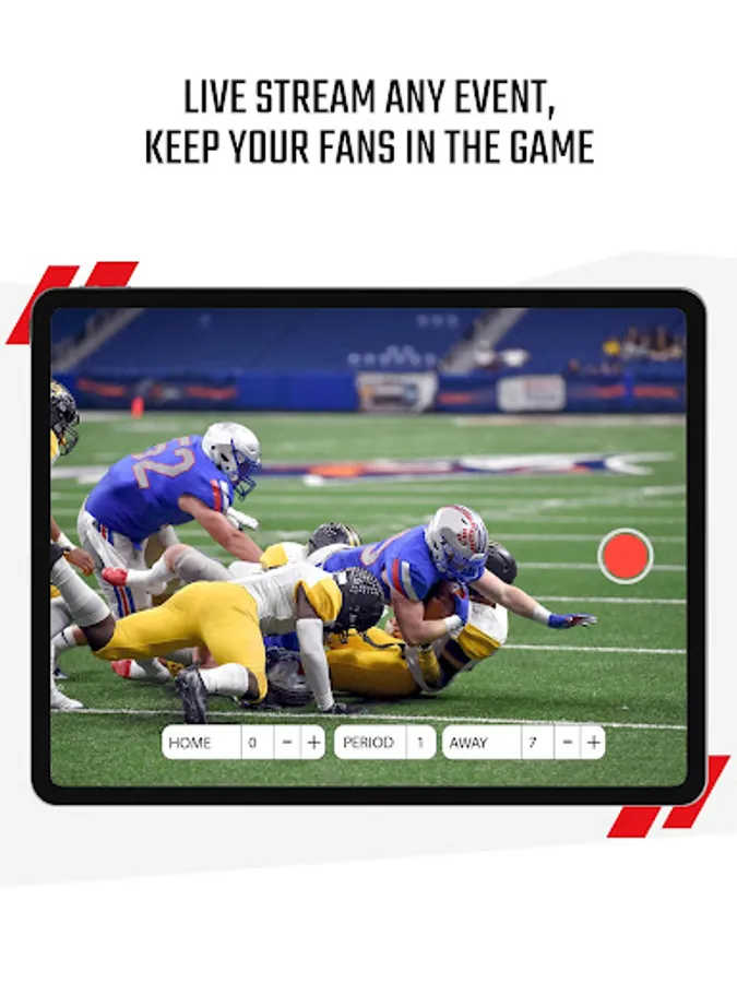 - Includes a broadcast window and a user-controlled scoreboard overlay during streaming for sporting events