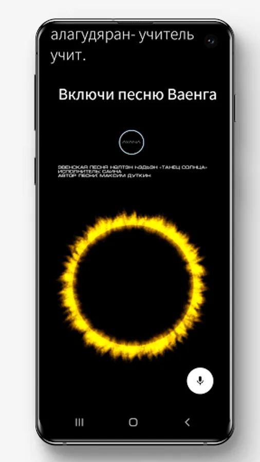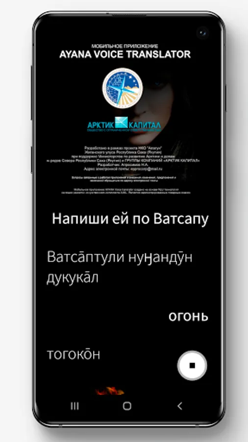 The application can translate words or short sentences from Russian into Evenk. In addition, AYANA can play a song in the Evenk language for you by asking the appropriate question “Play the Evenk song” or you can point-wise “Play the song of Margarita or Saina”. You can learn information about cuisine and national dress, Aiana can also tell a fairy tale in Evenk. The application also supports interactive elements in the form of buttons and animations. In addition to all machine learning is really limitless, the machine has the ability to self-learn and self-construct words based on the rules of a particular language. In addition, we got the opportunity to customize the pronunciations of the above, she can tell you a joke before the word "Hello", play geography with you, tell the time in any city in the world, answer any questions and even do mathematical calculations.