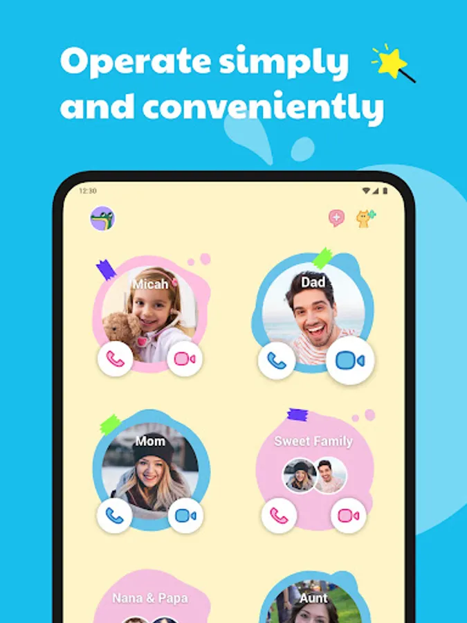 - Start a live video chat to help kids share their favorite moments with loved ones in voice calls. Recording voice and video to save memorable childhood forever!