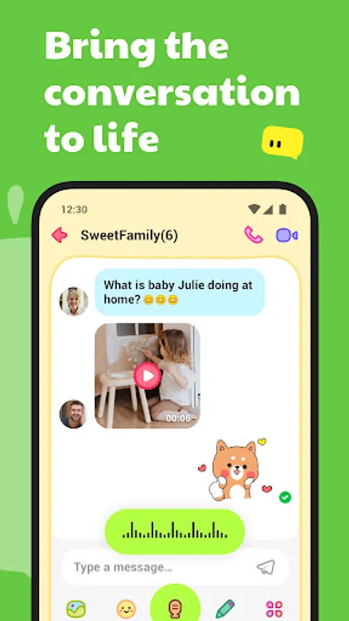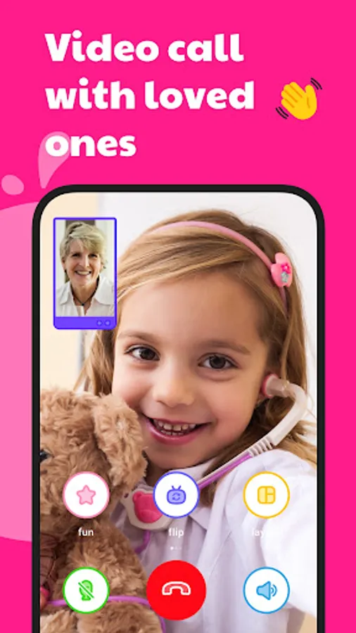 - Send and receive interesting photos, instant video messages, voice messages, stickers, emojis...Play fun and interactive games while calling with parents or close friends.
