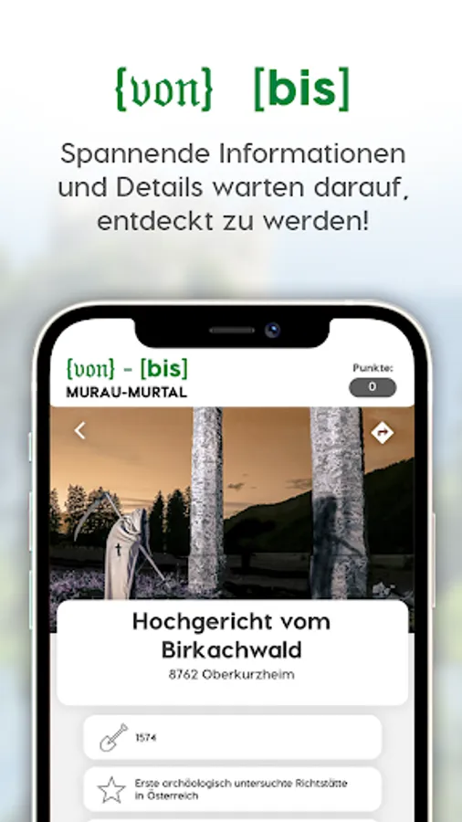 The app takes you on a historical city tour through Judenburg and shows you the archaeological sights of the region. From Eppenstein to the Neumarkt high valley, you will be presented with very special highlights.